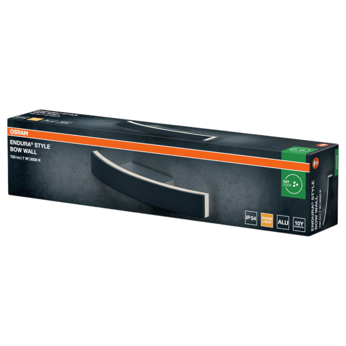 Az Osram Endura Style Bow kültéri LED fali lámpa elegáns és diszkrét megjelenésével jól illik a modern épületek homlokzatához.