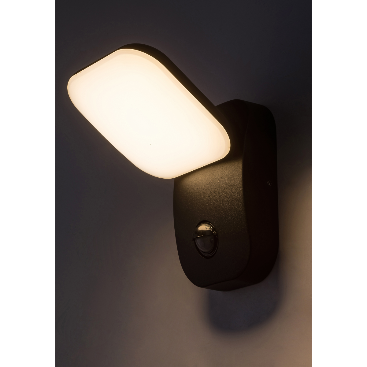 A modern stílusú, mozgás- és fényérzékelővel ellátott Odiel kültéri fali lámpa letisztult megjelenésével remek választás a teraszra vagy a ház külső falára. A fekete színű Odiel alumíniumból készül, szögletes alapformáját a búra és a dísztalp lekerekített sarkai lágyítják. A fehér műanyagbúra alatt a G energiaosztályba tartozó beépített LED fényforrás található, amelynek teljesítménye 12 W, fényereje búrával 850 lumen, búra nélkül 1400 lumen, színhőmérséklete pedig 3000 K. A meleg fehér fénnyel világító fényforrás élettartama 30 000 óra. A fényérzékelő a lámpa fényerejét mindig a körülményekhez igazítja. A mozgásérzékelő 8±2 méter távolságból, 110°-os látószögben érzékeli a mozgást. A kültéri lámpa méretei a következők: szélessége 120 mm, magassága 220 mm, faltól mért távolsága 115 mm. A lámpa IP44-es védettséggel rendelkezik, ami garantálja, hogy 1 mm-nél nagyobb szilárd tárgyak behatolása ellen, valamint bármilyen irányból fröccsenő víz ellen védett. Az ideális működési hőmérsékleti tartománya –20 – 40°C.