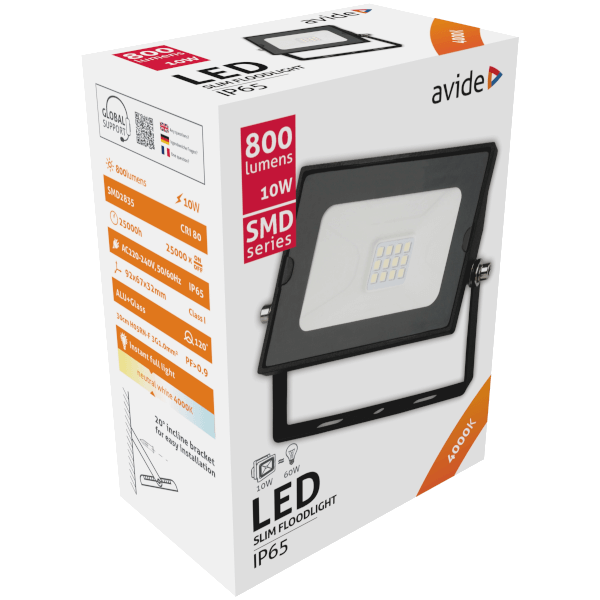 Az Avide SMD LED-es reflektorok a hagyományos halogén izzós reflektorokkal szemben ugyan azt a fényerősséget sokkal kevesebb villamos áram igénybevételével is tudják biztosítani, így egy csere után jelentős mértékű megtakarítás érhető el. A LED reflektorok akár 20-szor hosszabb élettartamot biztosítanak a hagyományos izzóval szerelt társaikhoz képest. Az IP65-ös besorolás miatt kiválóan alkalmas kültéri használatra is. A reflektor szélén található egy mozgatható fém keret, így ennek segítségével rögzítheti azt a földre, falra, vagy akár mennyezetre is. A felszerelés után a reflektor dőlésszöge bármikor állítható, így az pontosa oda fog világítani, ahova Ön szeretné. A LED reflektorok 30 cm-es szabad kábelvéggel kerülnek forgalomba és a csomag dugvillát nem tartalmaz! A termék üzembe helyezését csak szakember végezheti! Bármilyen művelet bekapcsolt tápfeszültség mellett elektromos áramütés veszélyével járhat.