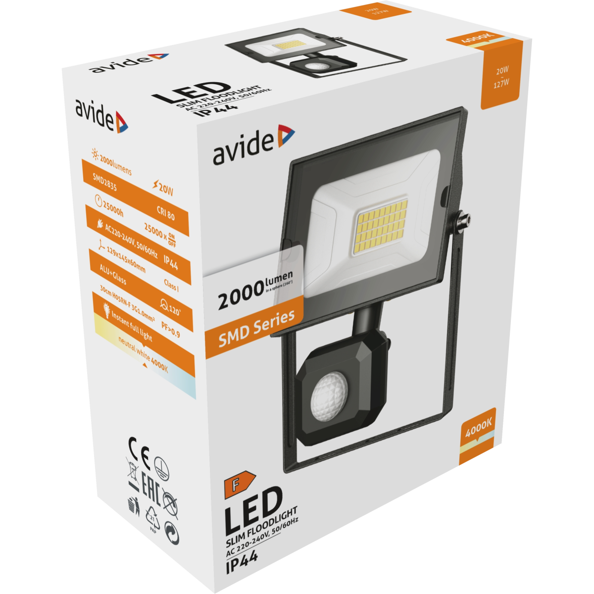 Az Avide SMD Reflektorok PIR mozgásérzékelővel természetes fehér (NW) világítási színben 10W / 20W / 30W-os teljesítménnyel, illetve természetes fehér (NW) színhőmérsékletben 50W-os teljesítménnyel érhetők el.
