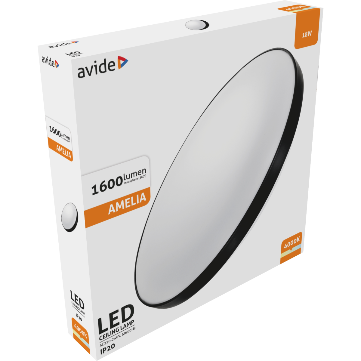 AVIDE AMELIA LED MENNYEZETI LÁMPA FEKETE 18W NW 4000K 355X65MM