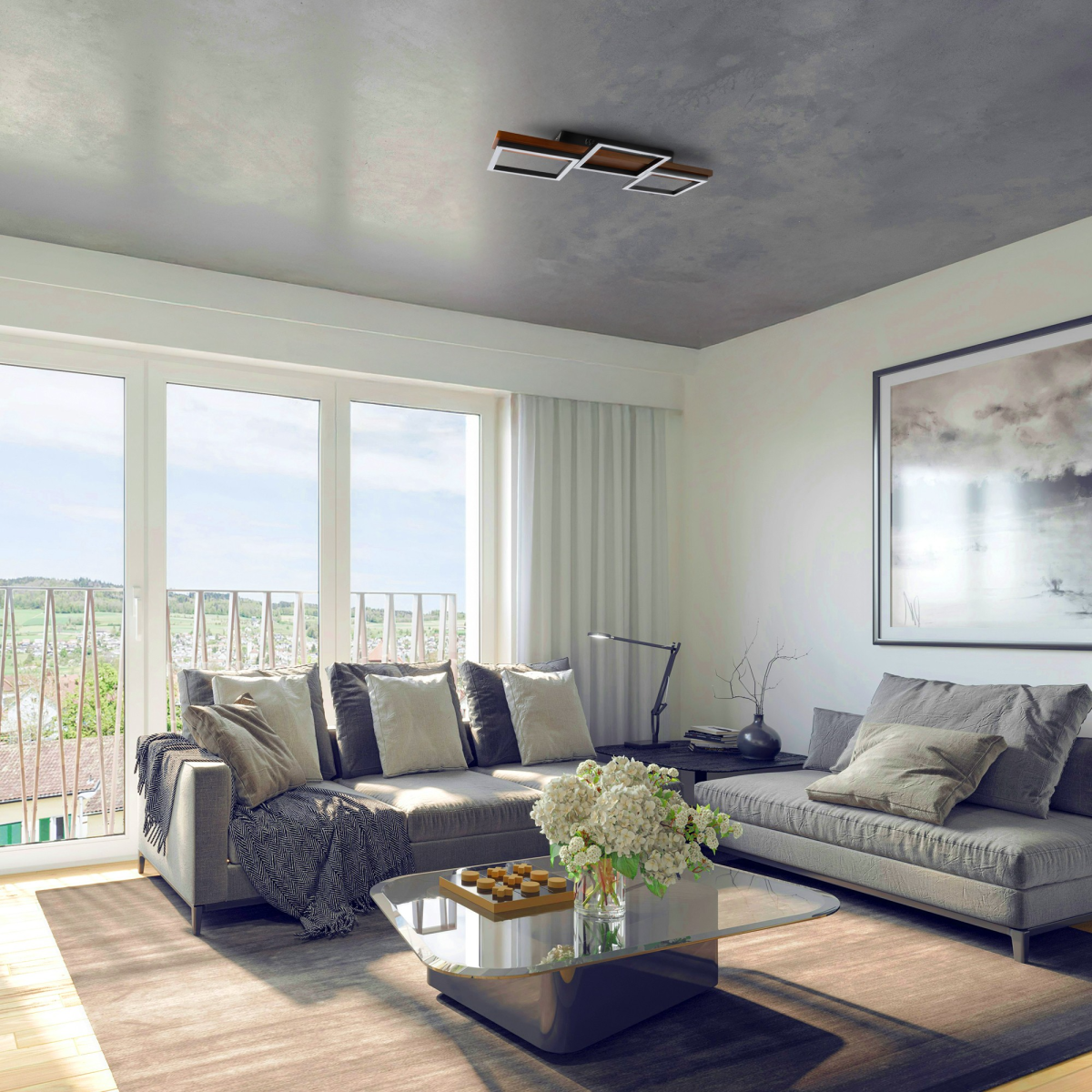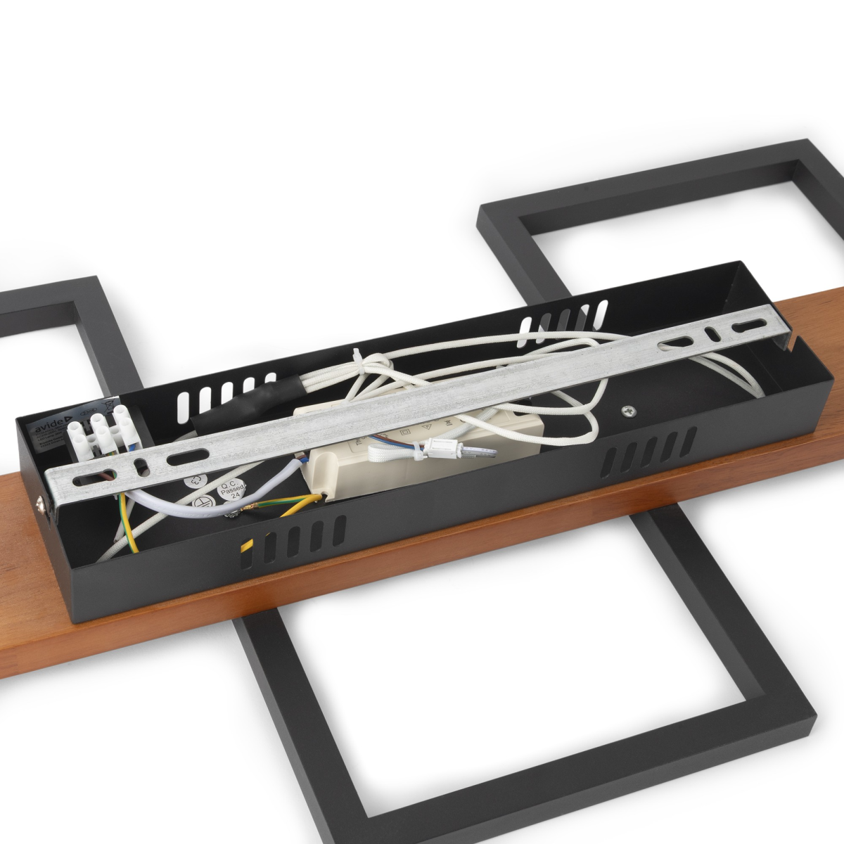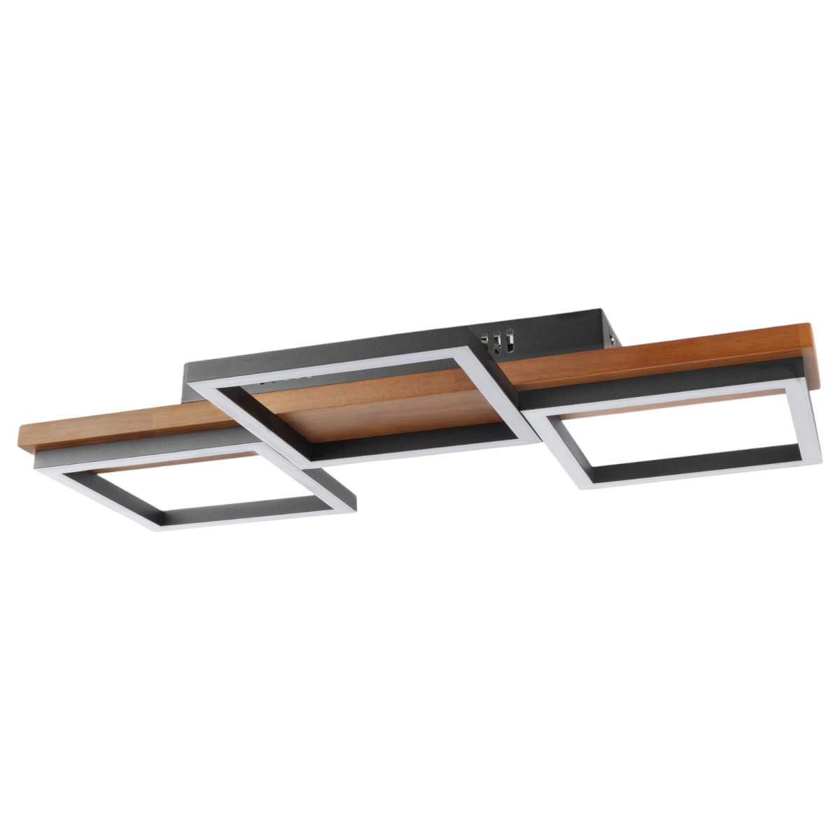 Az Avide Design Harper-3 mennyezeti lámpa a formabontó design és a funkcionális világítás tökéletes kombinációja. Három négyzetes LED-keret alkotja a lámpa látványos formáját, amelyet egy elegáns, fa hatású alap egészít ki. Ez a különleges kialakítás modern enteriőrökhöz és skandináv vagy loft stílusú lakásokhoz is remekül illeszkedik.