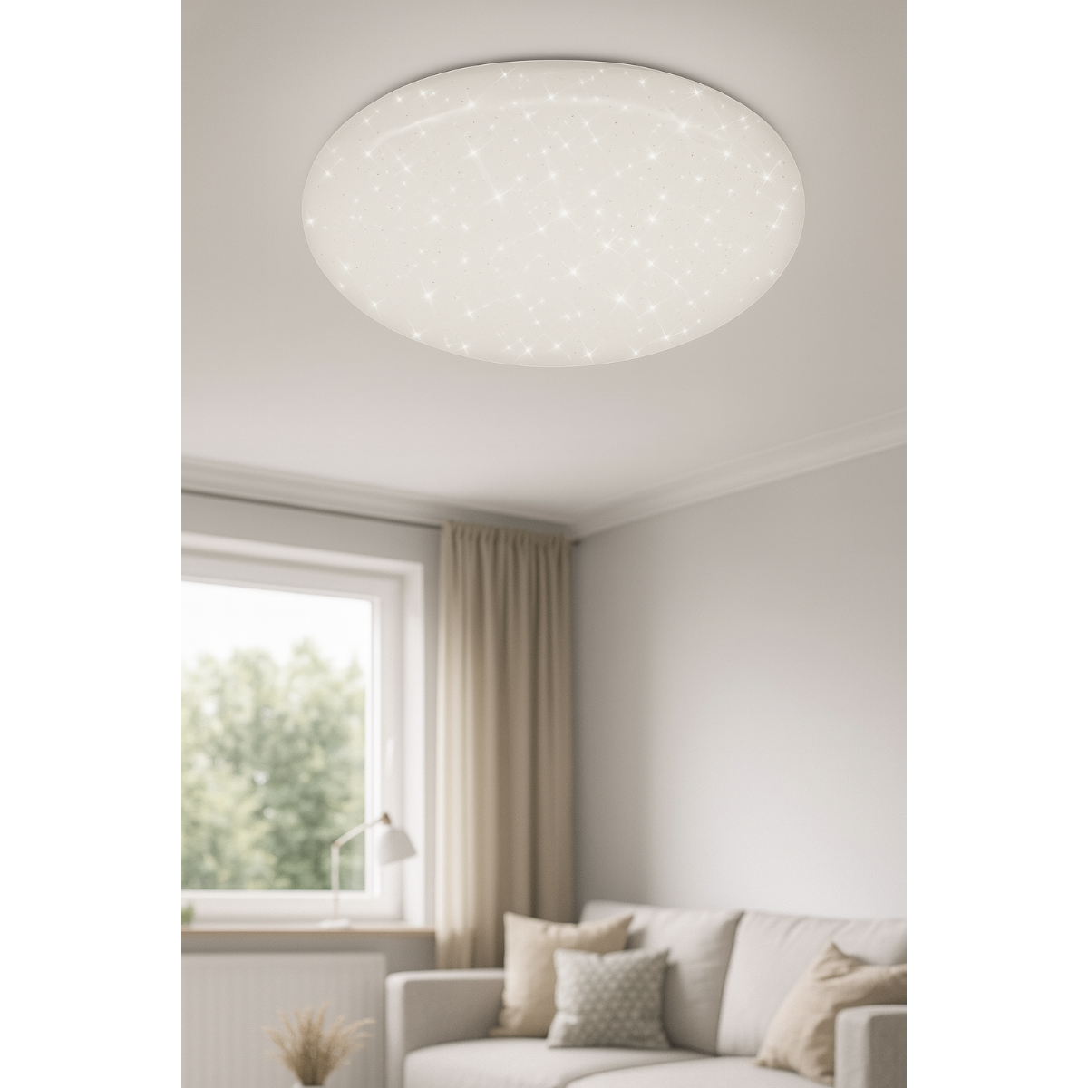 Az Avide Stella V2 LED mennyezeti lámpa csillagos diffúzorral nemcsak fényt ad, hanem stílust is kölcsönöz a helyiségnek. A 4000 K-es természetes fehér fény kellemes és kiegyensúlyozott légkört teremt hálószobában, nappaliban vagy akár előszobában is. A 2100 lumenes fényáram és a 24 wattos teljesítmény hatékony világítást biztosít. A lámpa átmérője 38 cm, magassága 6,5 cm. IP20 védettséggel rendelkezik, ezért beltéri, száraz helyiségekbe ajánlott.