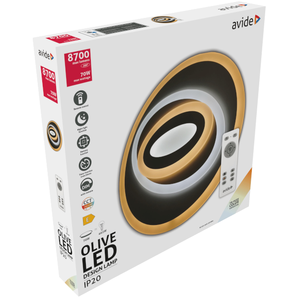 Az új Avide design mennyezeti lámpák egyedi formájuknak köszönhetően páratlan stílust varázsolnak az otthonokba. Minden típusnál 3 világítási mód áll rendelkezésre. Az első és a második módban a meleg fehér és a hideg fehér LED-ek kombinációját felhasználva érhetünk el különböző világítási hatást, míg a harmadik mód a meleg fehér és hideg fehér LED-ek együttes használatával hoz létre természetes fehér színhőmérsékletet, ezáltal megduplázva a teljesítményt és a fényerőt is. Első használat előtt a távirányítót párosítani kell a lámpával! Párosítás: Feszültség alá helyezést követő 5 másodpercen belül, nyomjuk meg egyszer röviden A "WIFI" jelzéssel ellátott gombot. Ha a párosítás sikeres volt, a lámpa 3 alkalommal felvillan és a távirányító máris használható. Leválasztás: Feszültség alá helyezést követő 5 másodpercen belül, nyomjuk meg háromszor röviden a "WIFI" jelzéssel ellátott gombot. Ha a leválasztás sikeres volt, a lámpa több alkalommal felvillan és ez jelzi a leválasztás sikerességét. A termék rádiófrekvenciás távirányítójának segítségével, a módok közötti váltásokon kívül, lehetőségünk van fényerő és színhőmérséklet állítására, valamint időzítő funkció bekapcsolására. Egyszeri megnyomással 5 perces, kétszeri megnyomással 30 perces időzítőt állíthatunk be és a harmadik megnyomásra kikapcsolhatjuk az időzítő funkciót. A termék memória funkcióval rendelkezik, így távirányítóval történő kikapcsolás után, a következő bekapcsolásnál az előzőleg használt mód és fényerő lesz aktív.