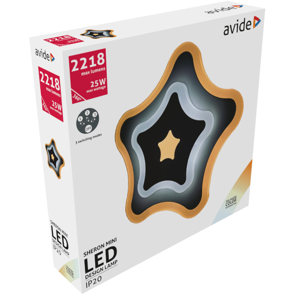 Az új Avide design mennyezeti lámpák egyedi formájuknak köszönhetően páratlan stílust varázsolnak az otthonokba. Minden típusnál 3 világítási mód áll rendelkezésre. Az első és a második módban a meleg fehér és a hideg fehér LED-ek kombinációját felhasználva érhetünk el különböző világítási hatást, míg a harmadik mód a meleg fehér és hideg fehér LED-ek együttes használatával hoz létre természetes fehér színhőmérsékletet, ezáltal megduplázva a teljesítményt és a fényerőt is. A módok közötti váltás a fali kapcsoló fel és-lekapcsolásával érhető el. Memória funkcióval van ellátva.