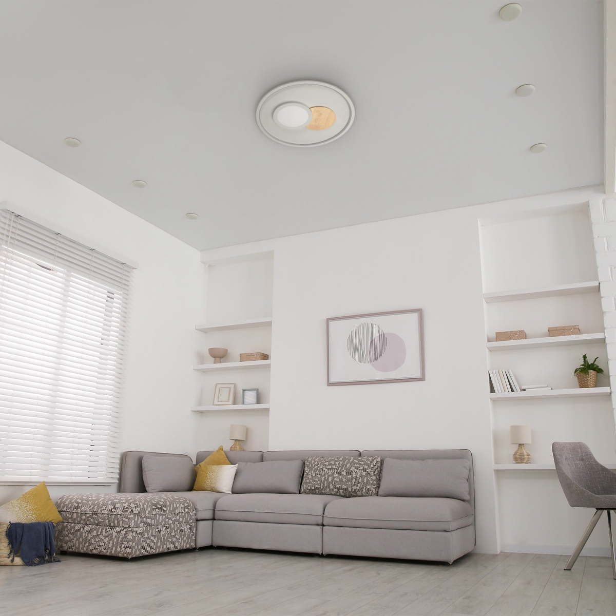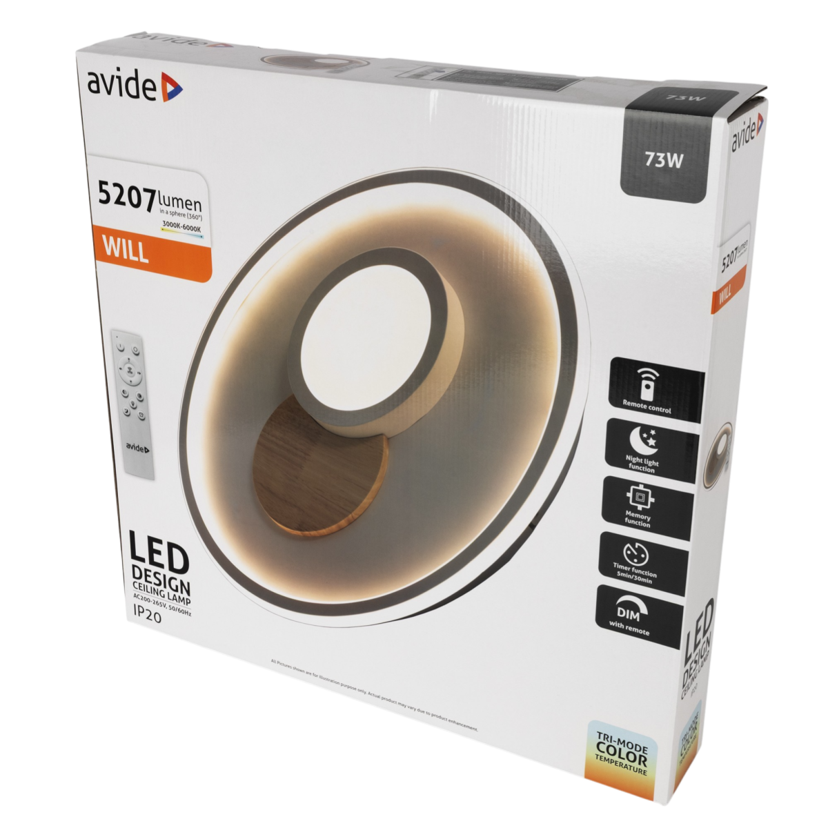A fa hatású dekorral ellátott kör alakú design stílusos megjelenést nyújt, miközben a 73 Wattos teljesítmény és az 5207 lumen fényáram gondoskodik a megfelelő fényerőről.