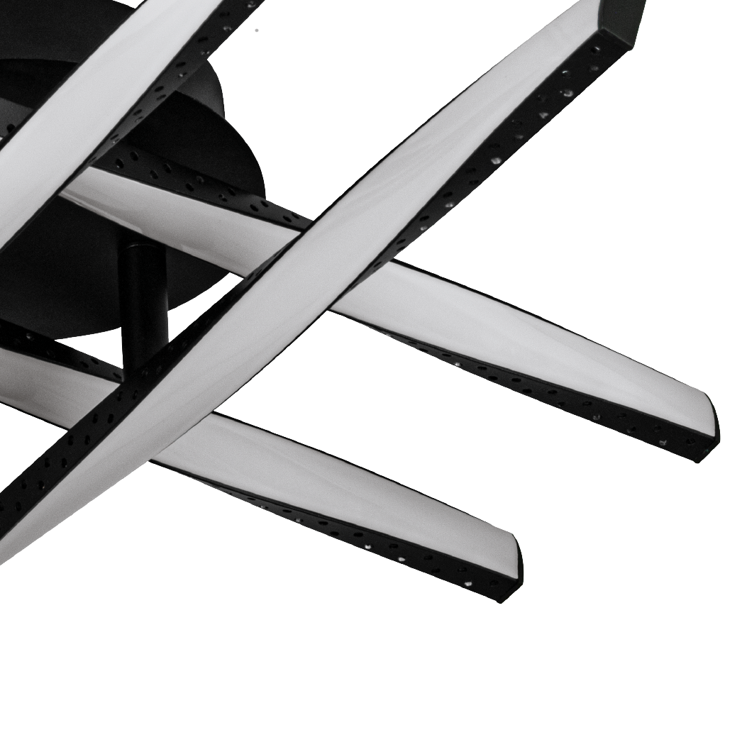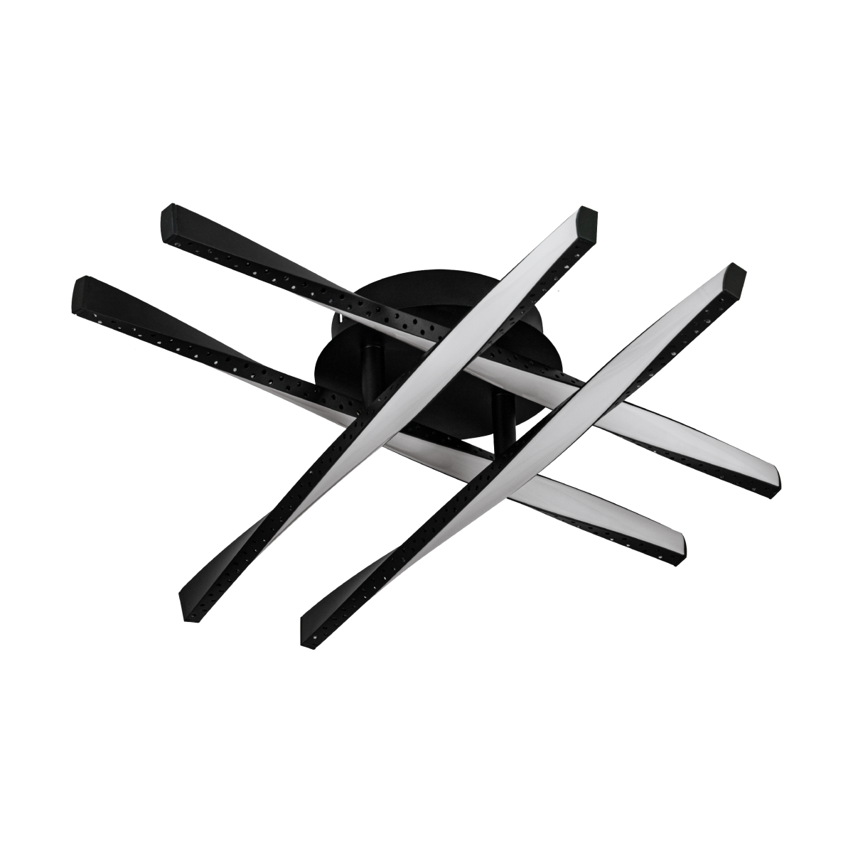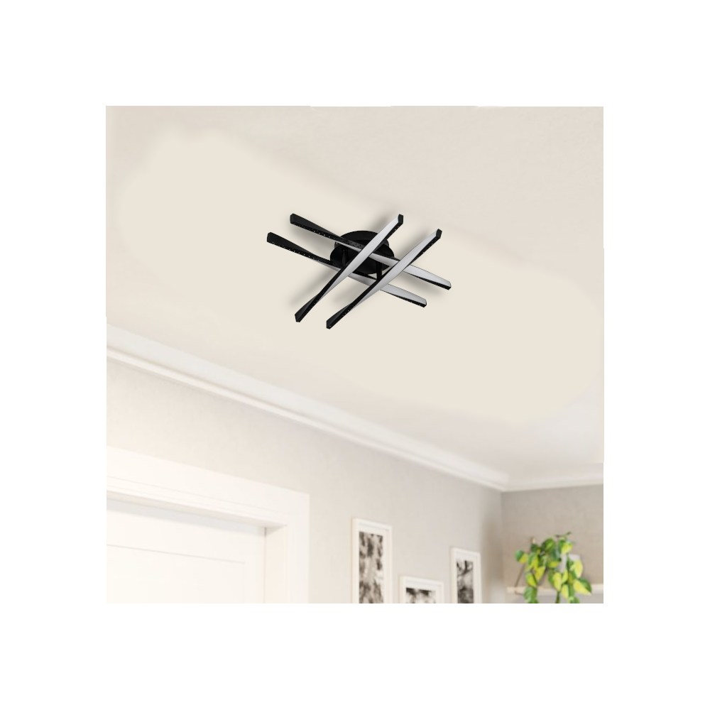 LED mennyezeti lámpa, fekete színű fém vázzal, a Led-ek fehér színű műanyag borítással. A csavart ágai modern megjelenést kölcsönöznek.