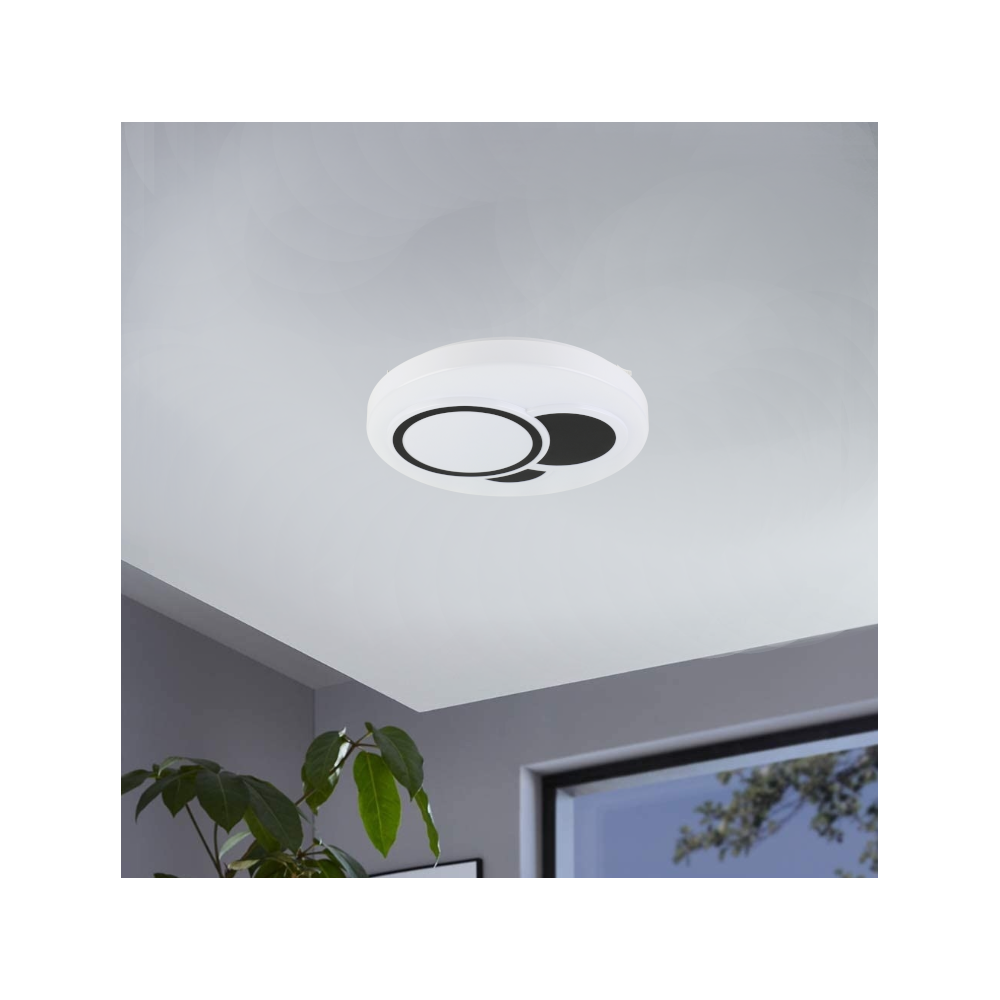 LED mennyezeti lámpa fekete/fehér színben, távirányítóval, mellyel a színhőmérséklet szabályozható 3000-6500K.