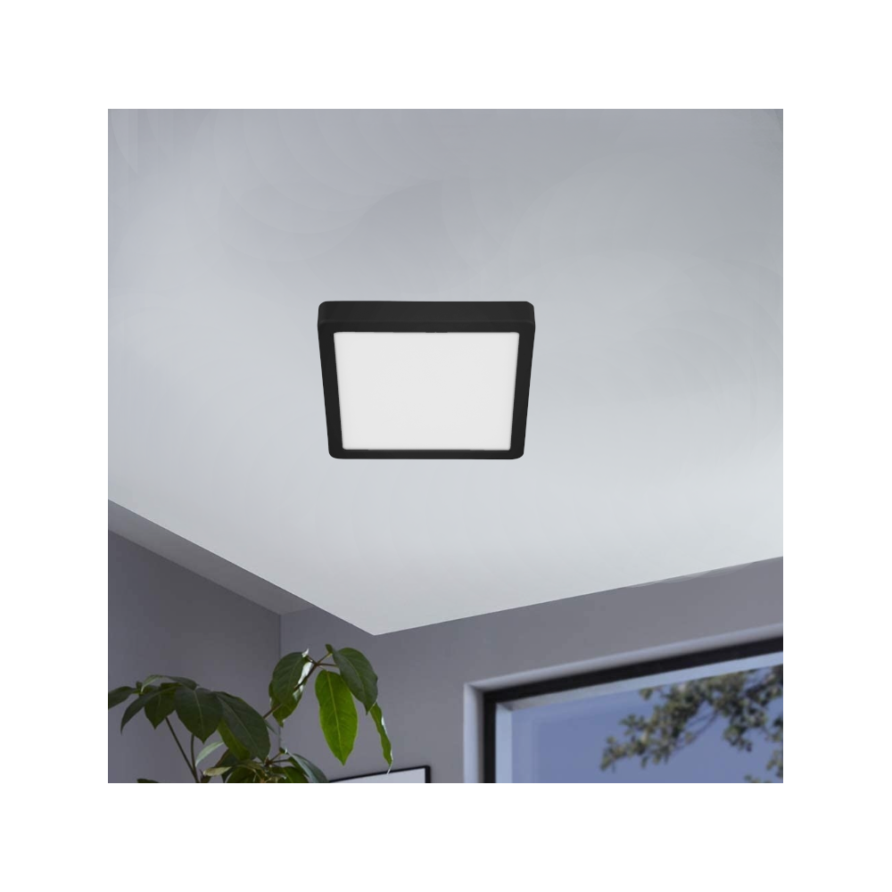 FUEVA5 Mennyezeti LED lámpa, fekete színben. Teljesítménye: 20,5W, 2500LM, 4000K, IP44. A lámpa mérete: 28,5x28,5 cm.