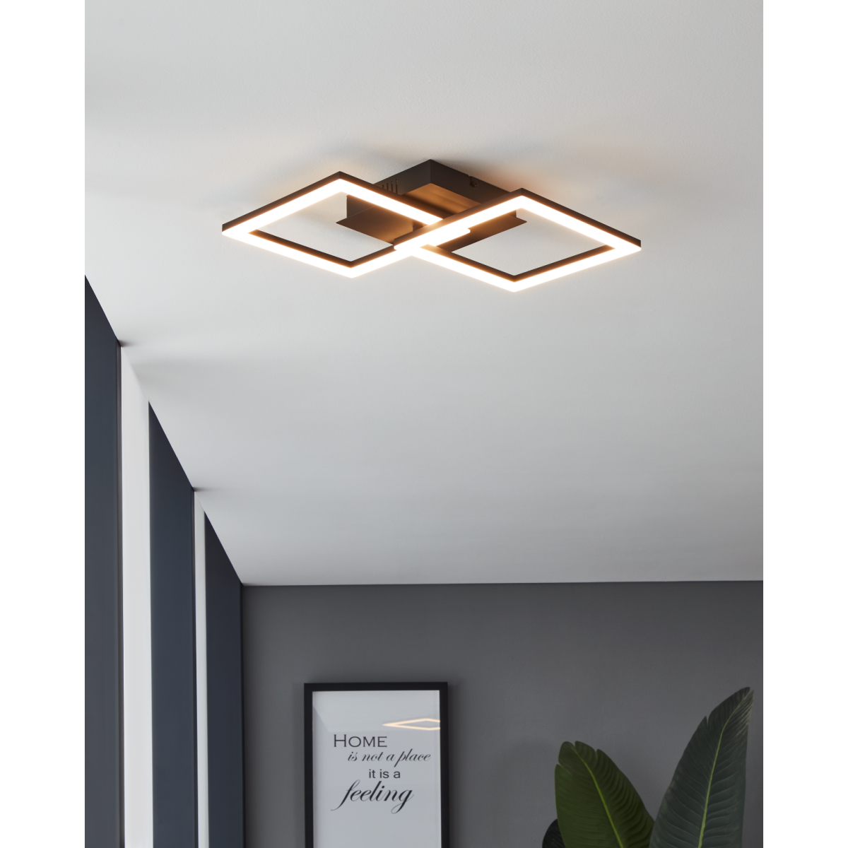 Ez az RGBIC LED mennyezeti lámpa fekete acélból és fehér műanyagból készült. Modern kialakítású. Egyénileg vezérelhető LED-eket tartalmaz, így kívánság szerint szivárványhatást érhet el. Ezenkívül 2100 lumenes fényt bocsát ki, és kellemes légkört teremt nappalijában, hálószobájában vagy konyhájában. Távirányítóval vezérelhető, mely tartozéka a terméknek.