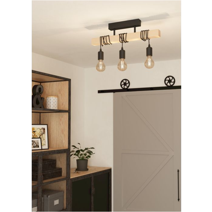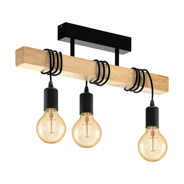 EGLO TOWNSHEND MENNYEZETI LÁMPA E27 MAX 3X60W IP20 FEKETE, TÖLGY