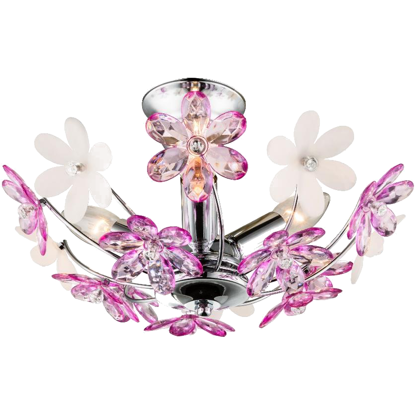 GLOBO DL CHROM MENNYEZETI LÁMPA 3*E14 40W D:35CM LILA FEHÉR AKRIL VIRÁGOS