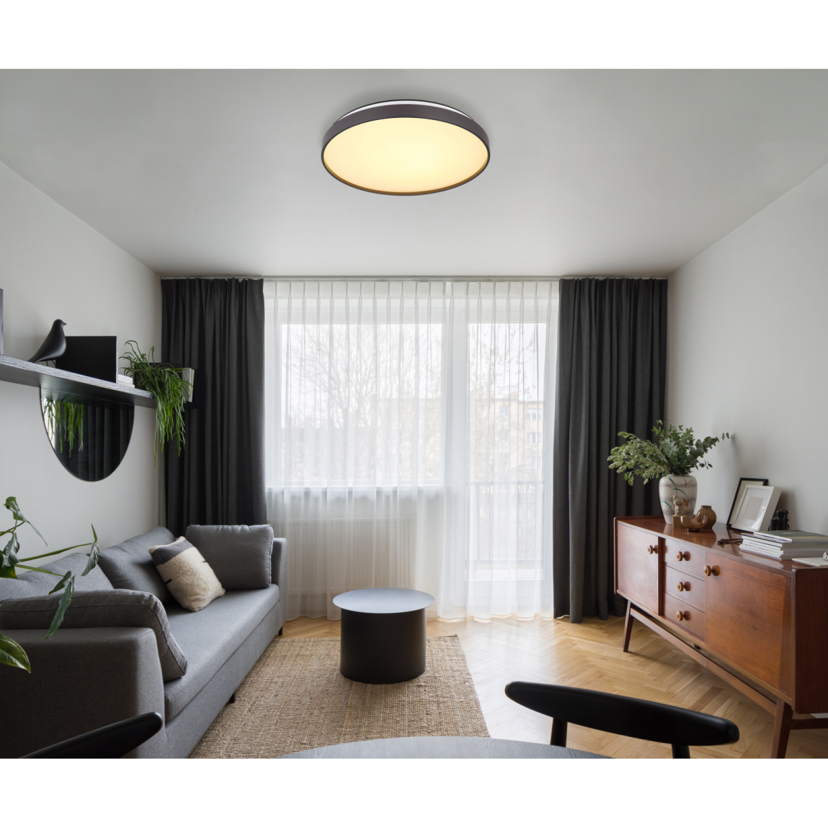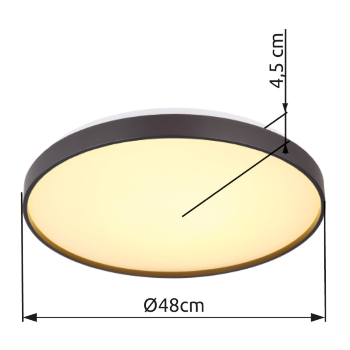 A GLOBO 41262-24 mennyezeti lámpa átmérője 480 mm, magassága 45 mm. Fehér fémből, antracit műanyagból és fehér színű akrilüvegből készült. A mennyezeti lámpa 24 W teljesítményű és 230 V feszültségű LED fényforrással van felszerelve. A fényforrás fényereje 2500lm forrás és 1400lm kimeneti fényerővel rendelkezik 3000K színhőmérséklet mellett. A mennyezeti lámpa egy modern és elegáns világítóelem, amely tökéletesen alkalmas nappaliba, étkezőbe vagy hálószobába.