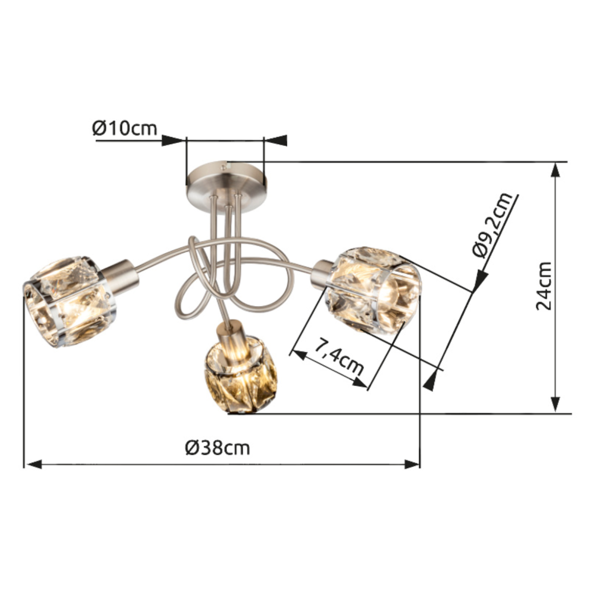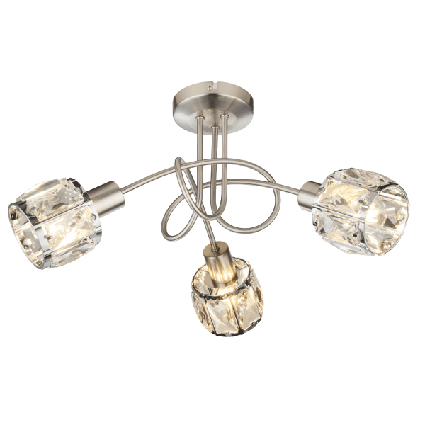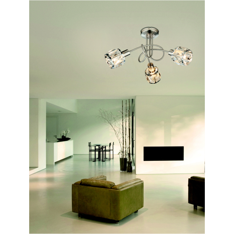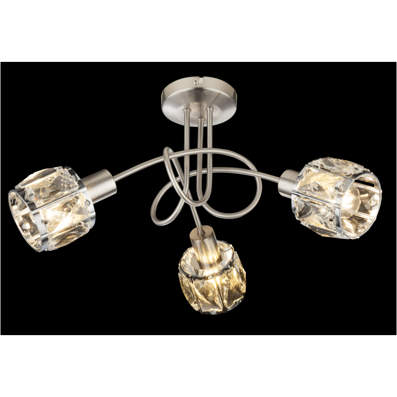 Ez a lámpa matt nikkel vázból és egy elegáns víztiszta üveg-kristály alkotta fejből áll, melytől igazán elegáns kinézetet kap. A lámpa 3 db E14-es foglalattal rendelkezik, mely 3 db maximum 40W teljesítményű fényforrással üzemeltethető.