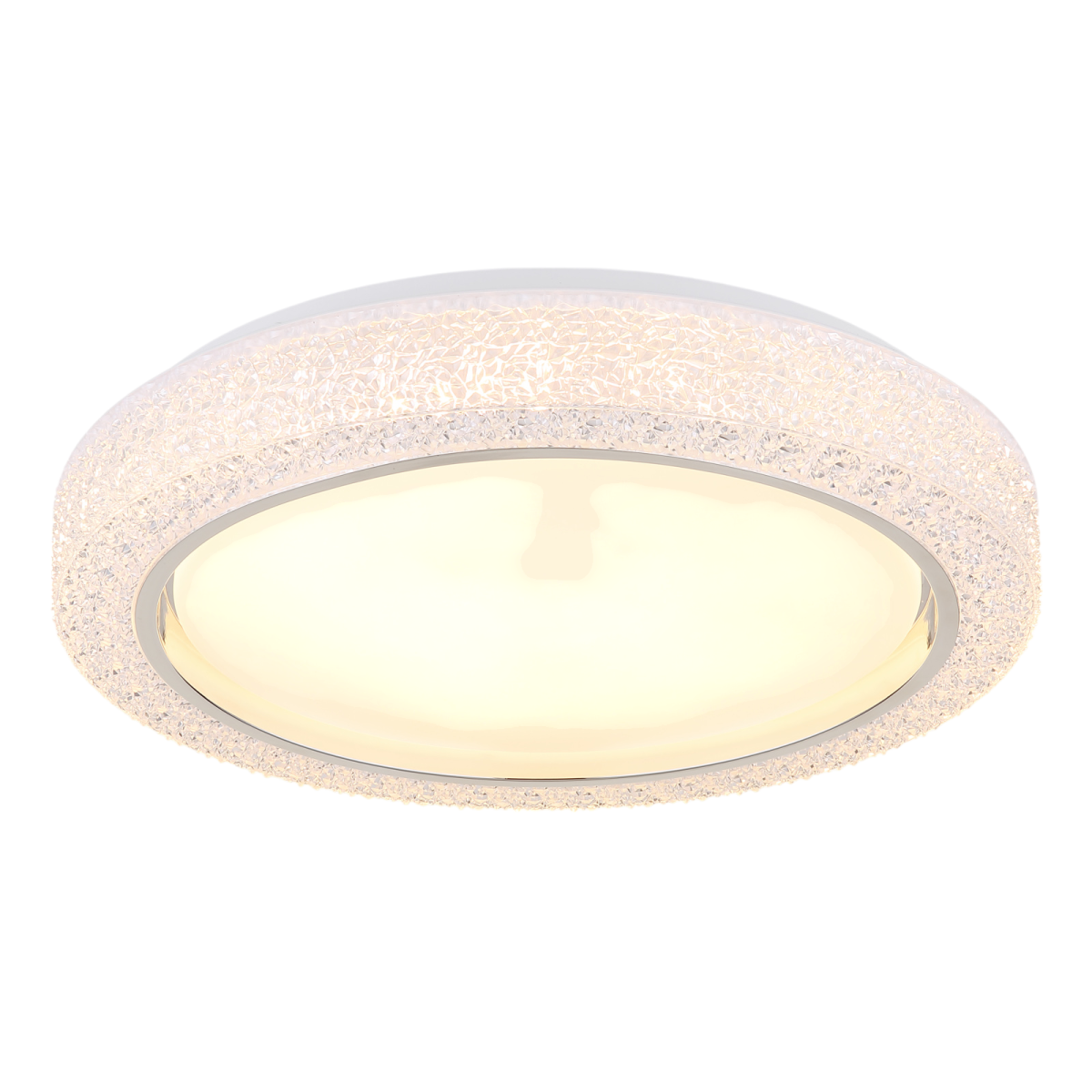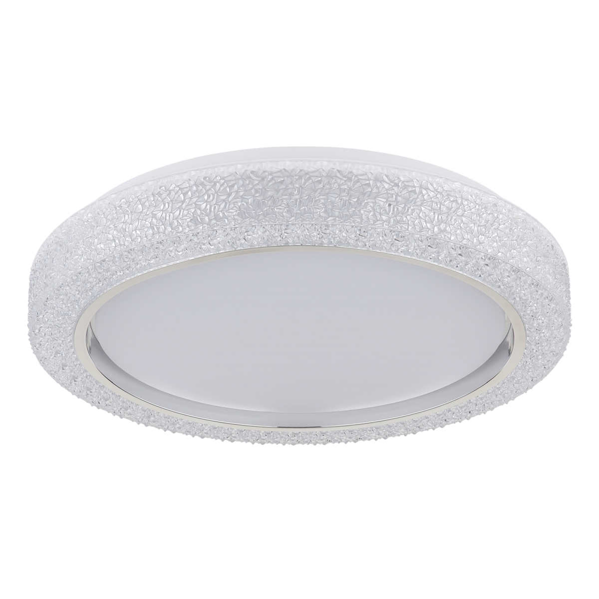 AA GLOBO 41265 LIAMI mennyezeti lámpa megtervezésénél kombinálták az eleganciát és a funkcionalitást. Kerek és lapos kialakításának köszönhetően minden helyiségben szemet gyönyörködtető látványt nyújt. A fehér fémtest és a fehér színű műanyag búra modern jelleget kölcsönöz, a műanyag kristályokkal kirakott krómgyűrű pedig további csillogást biztosít.