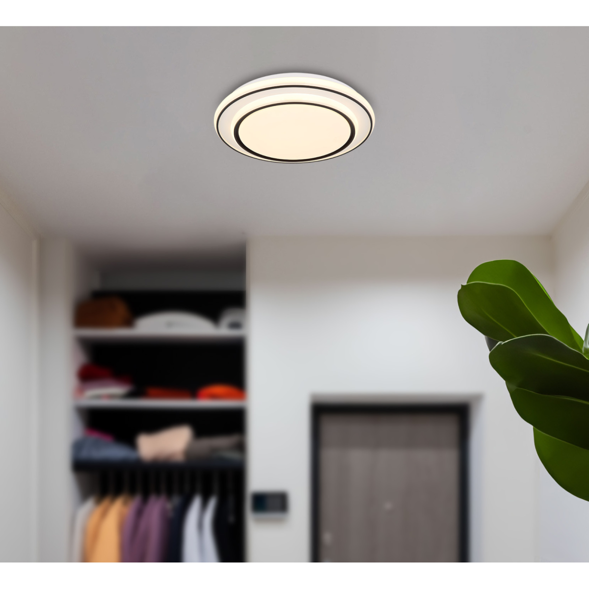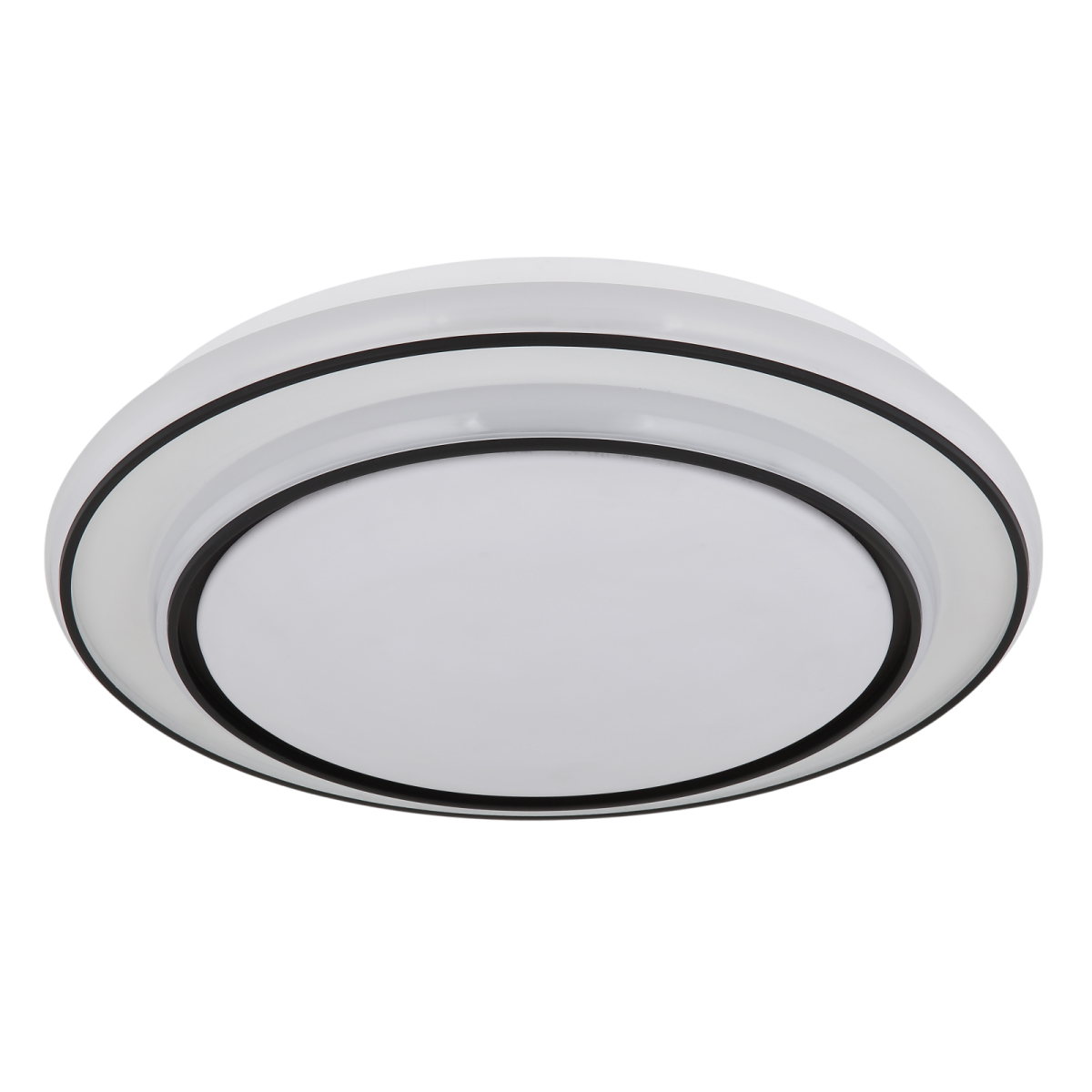 A GLOBO 48136-24 LOGAN mennyezeti lámpa elegáns és barátságos fényt biztosít szobájának. Ez a külső gyűrűvel ellátott kerek mennyezeti lámpa stílusos megjelenéssel rendelkezik. A lámpatest fehér lakkozott fémből készült, a búra pedig fekete díszítéssel ellátott fehér színű akrilból, amely lágy, meleg fényt hoz létre.