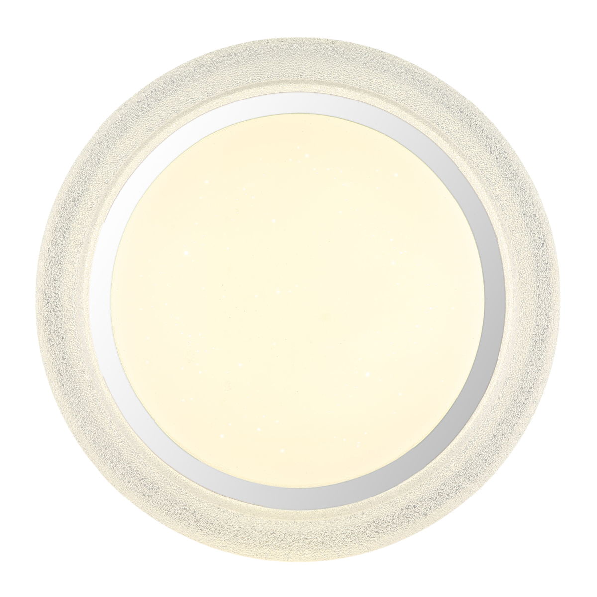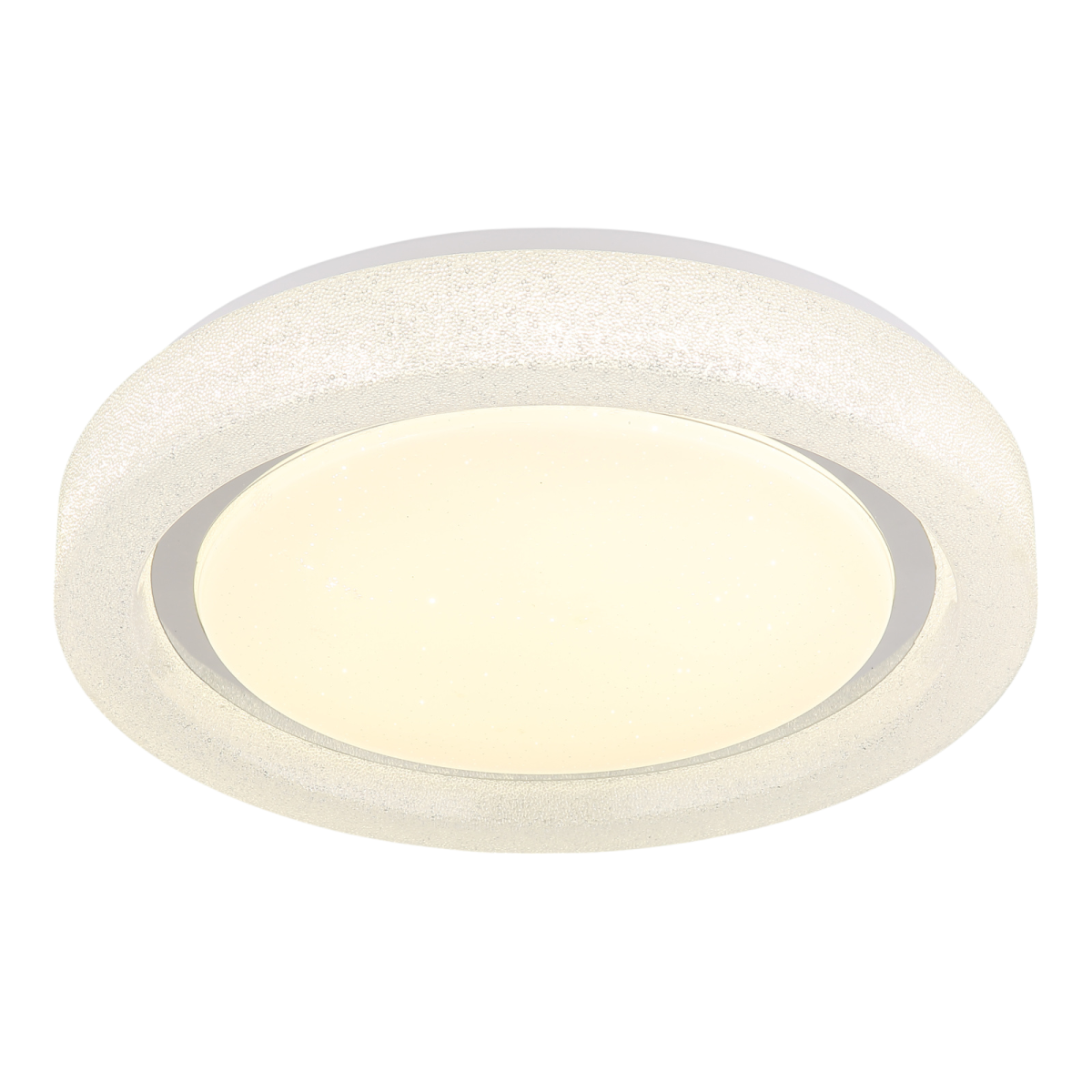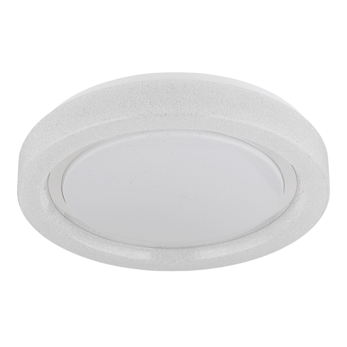 Kerek kialakítású mennyezeti lámpa kristály élekkel és csillogó hatásokkal elbűvölő világítási megoldást kínál. A fehér fém test és a krómgyűrűs, átlátszó műanyag kristályokból készült búra luxus hangulatot teremt.