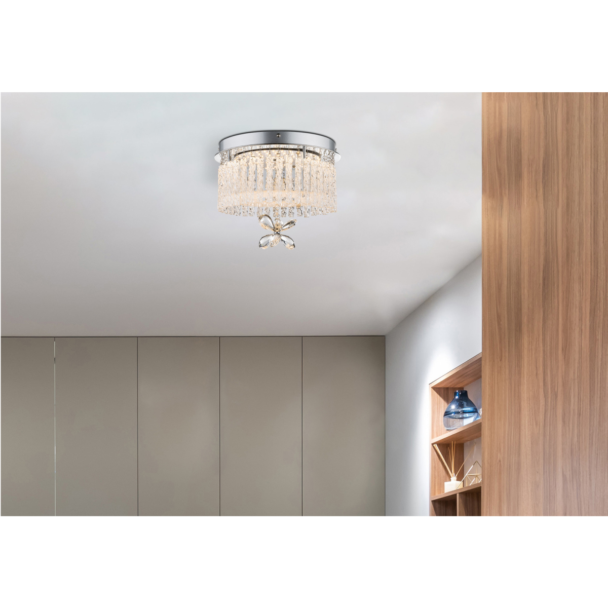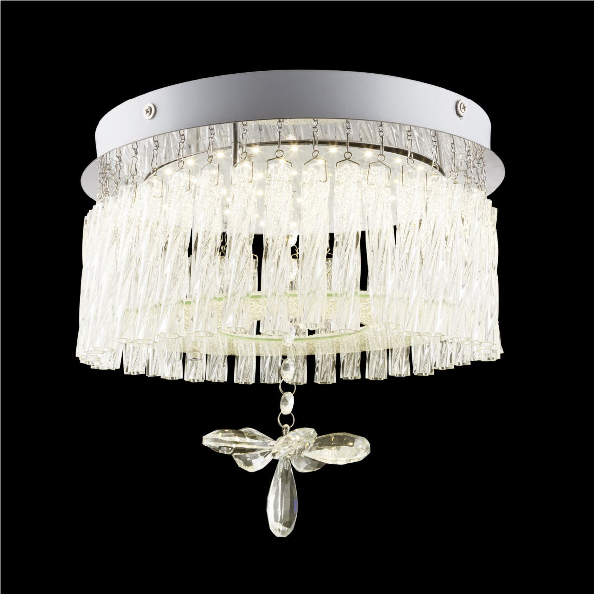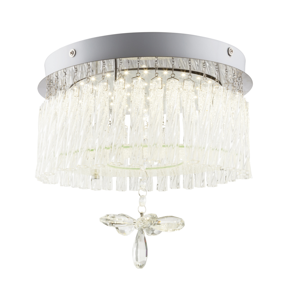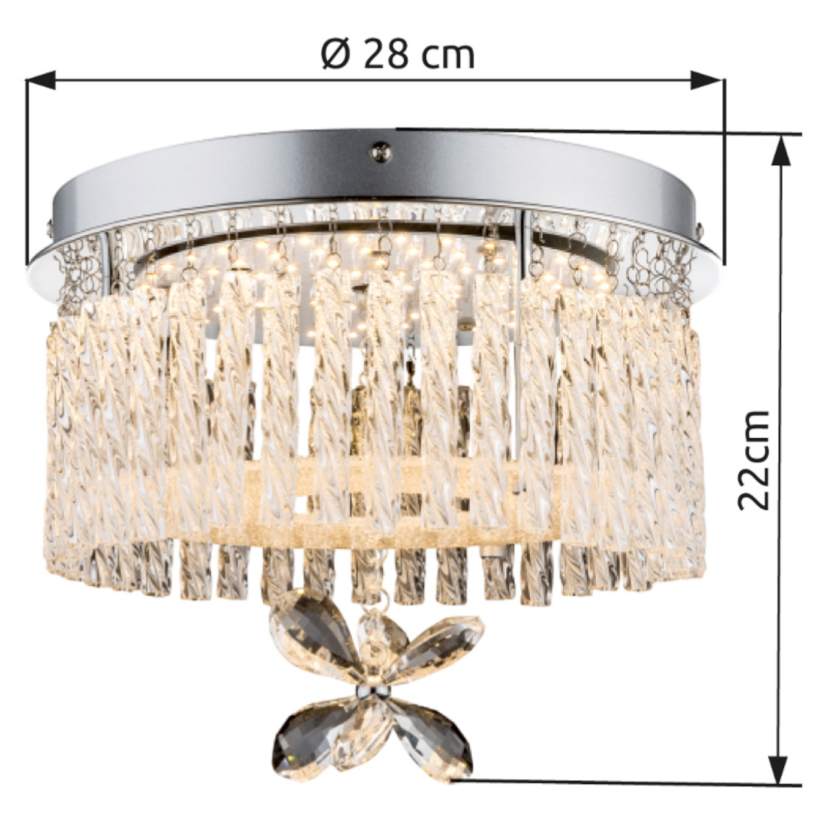 Ez a különleges kerek formájú mennyezeti lámpa króm vázon található akril pálcák és üveggolyók, valamint a középen függő virág formájú dísz által igazán elegáns kiegészítője lehet otthonának.