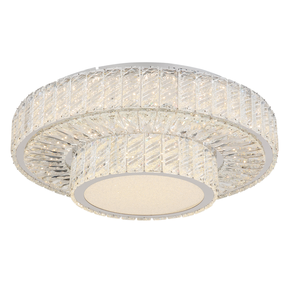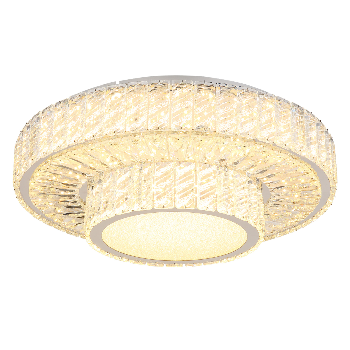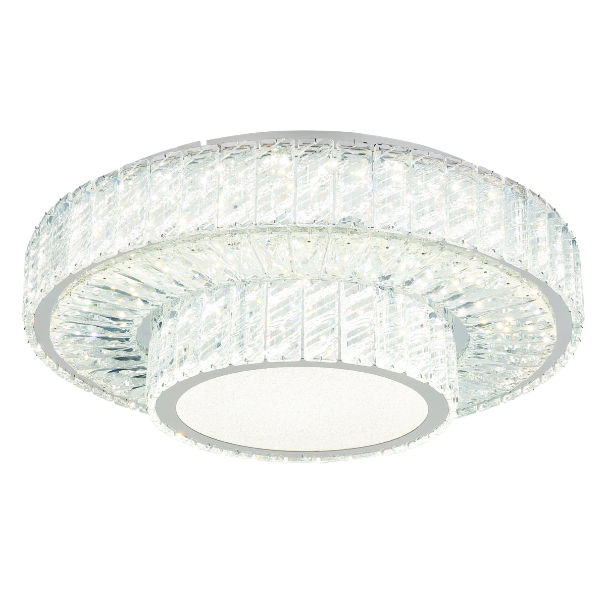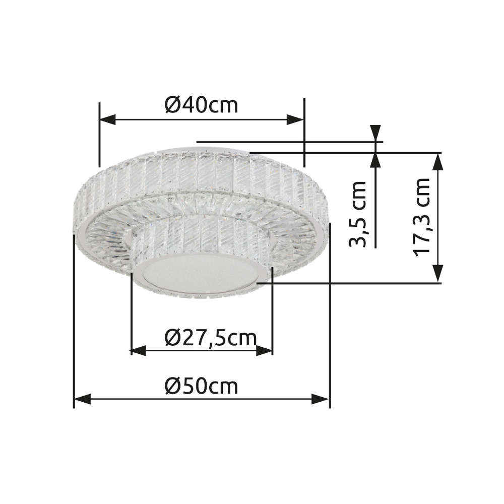 Tapasztald meg a MUCKY lámpa báját és eleganciáját! A krómozott fémmel és átlátszó K5 kristályokkal díszített mennyezeti lámpa lenyűgöző fényjátékot varázsol a szobába. A fali kapcsoló segítségével több fokozatban szabályozható. A színek a mellékelt távirányítóval állíthatóak be tetszés szerint, a beépített memóriafunkció pedig lehetővé teszi a preferált beállítások megőrzését. A MUCKY mennyezeti lámpa emellett lágy éjszakai fényt is biztosít. A termék az elemeket (2x AAA) már tartalmazza. A MUCKY mennyezeti lámpa 500 mm átmérőjével és 173 mm magasságával bármely helyiség ragyogó fókuszpontjává válik. A lámpatest energiatakarékos LED-forrással van ellátva, amely 50 W teljesítményt, 230 V feszültséget, 633-3965 lm fényáramot, valamint 2700-6000 K állítható színhőmérsékletet kínál.