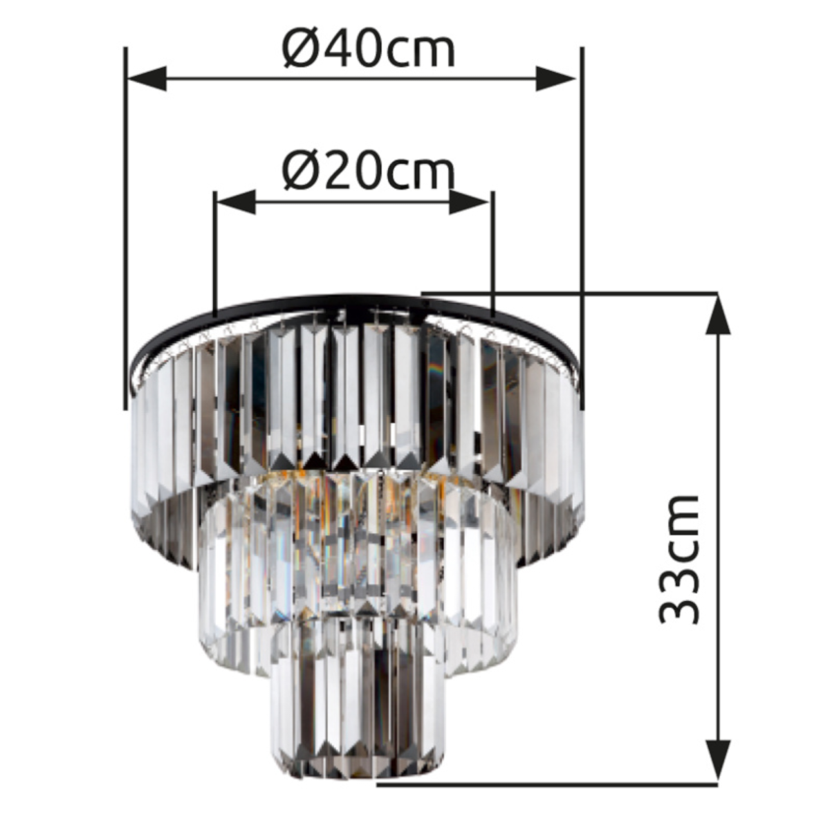 A GLOBO 15695D mennyezeti lámpa matt fekete színű fémből és füstszínű, átlátszó üvegkristályokból készült. A lámpához 3 darab E27-es foglalatú izzó szükséges, amelyek maximális teljesítménye 40W és 230V feszültségűek - nem tartoznak a csomaghoz. Reméljük, hogy a termék elnyeri a tetszésedet.