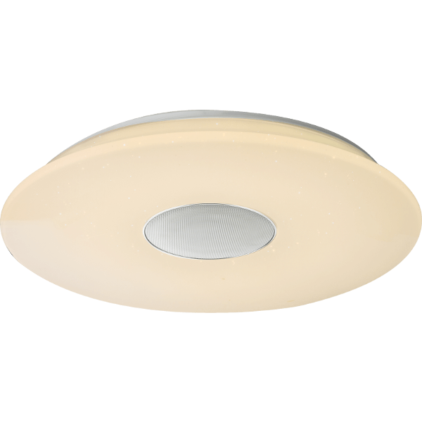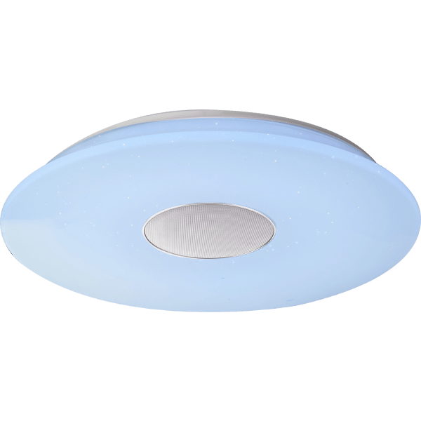 Mennyezeti led lámpa "nicole" led 50w 2600lm, távirányítóval állítható szín és fényerő szabályozás, bluetooth zene lejátszó, átmérő: 53cm, fehér opál, beépített fényforrással értékesítjük, en.o.: a