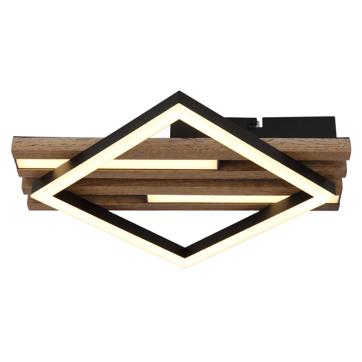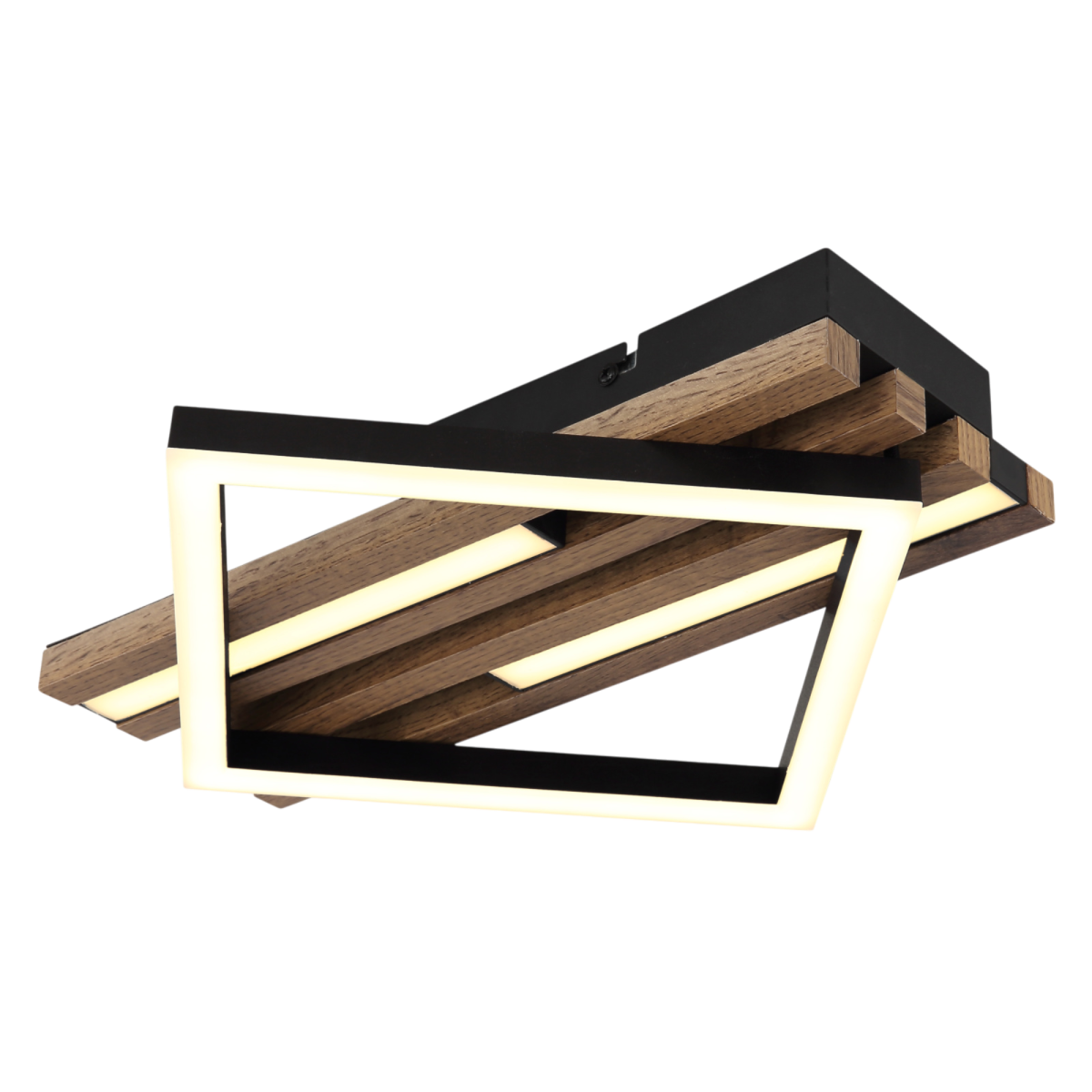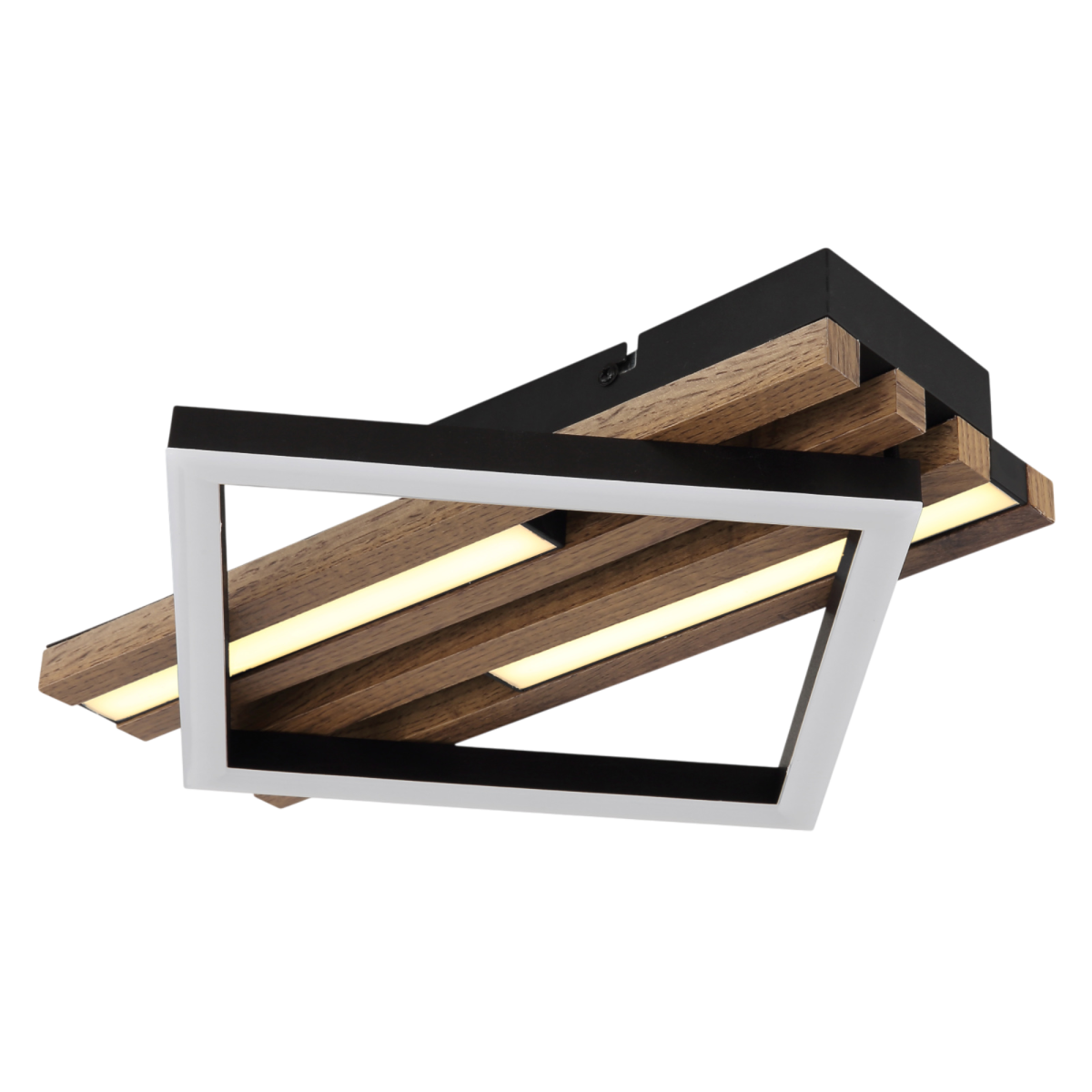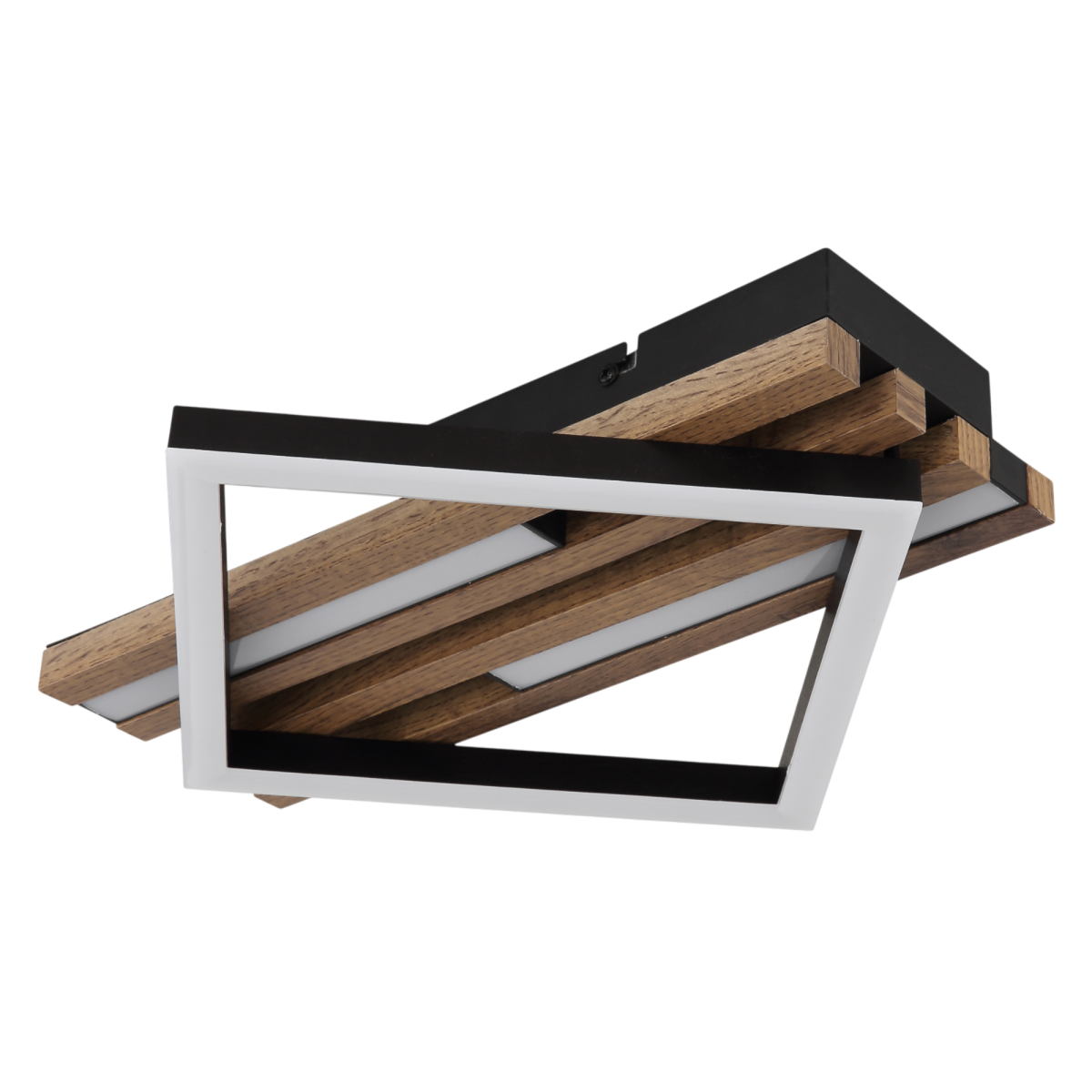 A GLOBO 67344D OBRIEN mennyezeti lámpa modern kialakítással rendelkezik. A matt fekete fém burkolata tökéletesen kombinálódik az akusztikus MDF fa panel felülettel, meleg és stílusos hangulatot kölcsönözve szobájának. A fekete műanyag keret és az fehér műanyag búra egyenletes fényeloszlást és kellemes világítást biztosít.