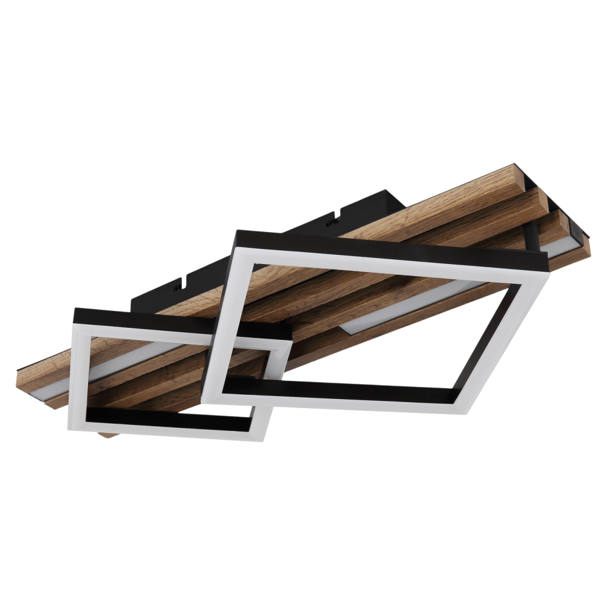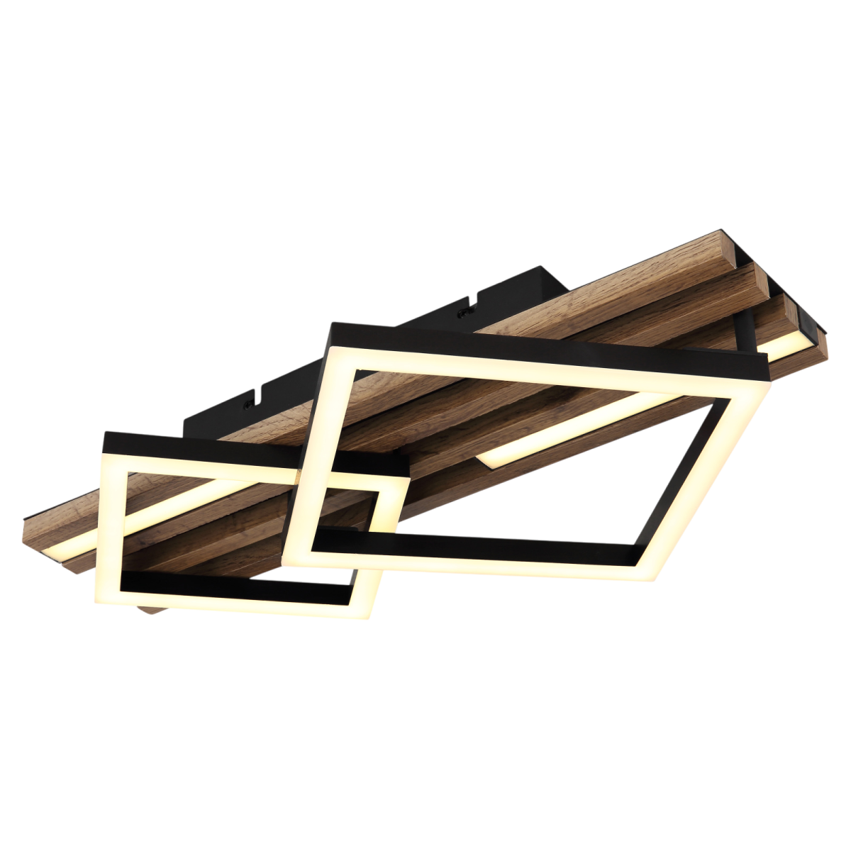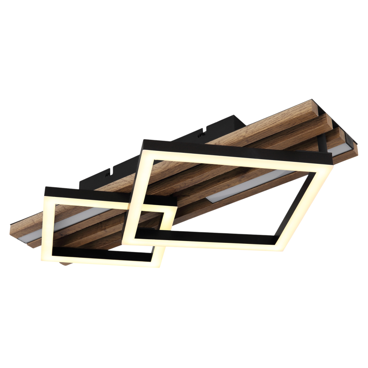 A Globo Obrien mennyezeti LED lámpa stílusos és funkcionális választás a modern belső terek megvilágítására. Letisztult, fekete matt fémháza, fa mintázatú MDF panele és fehér búrája harmonikus összhatást teremt, miközben kellemes, meleg fényt biztosít.