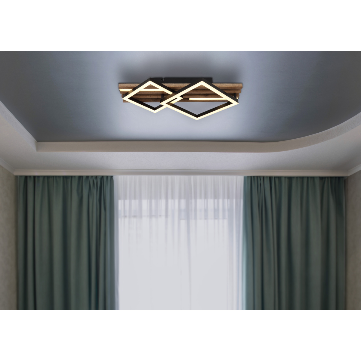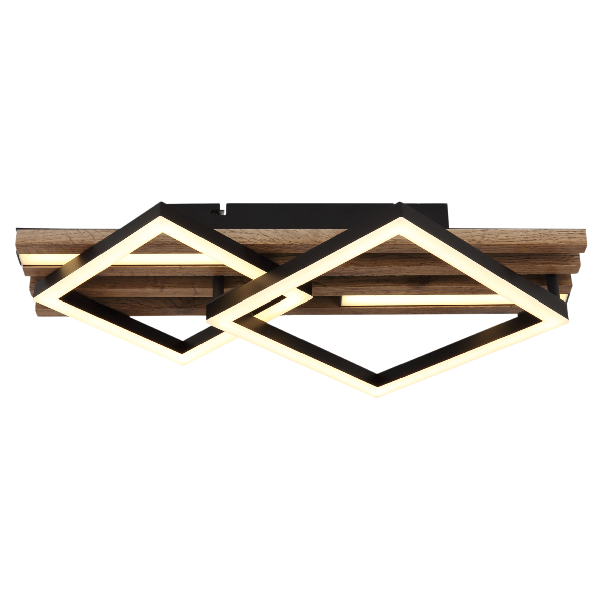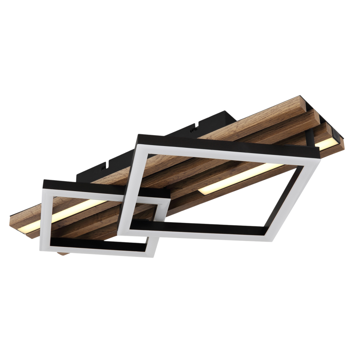 A Globo Obrien mennyezeti LED lámpa stílusos és funkcionális választás a modern belső terek megvilágítására. Letisztult, fekete matt fémháza, fa mintázatú MDF panele és fehér búrája harmonikus összhatást teremt, miközben kellemes, meleg fényt biztosít.