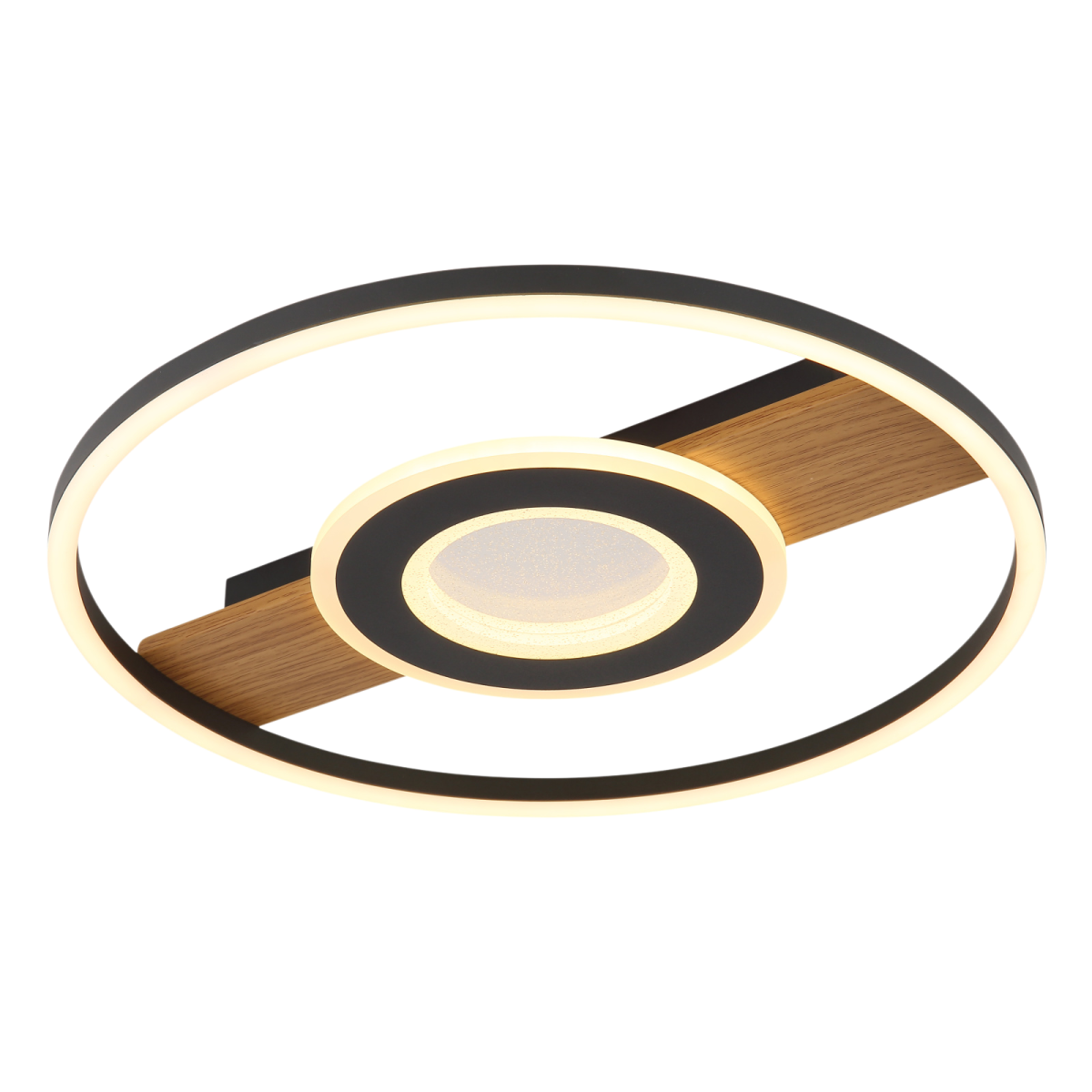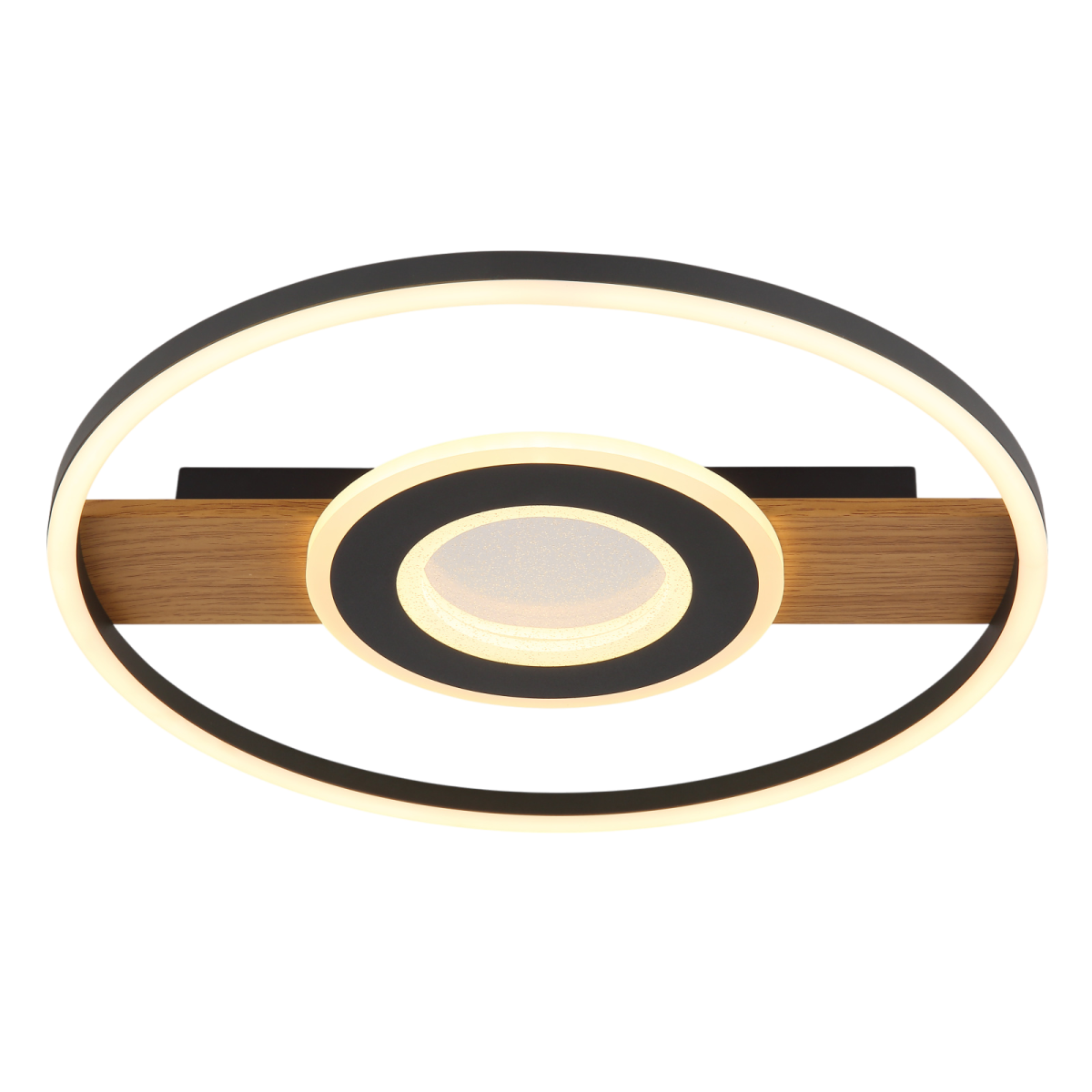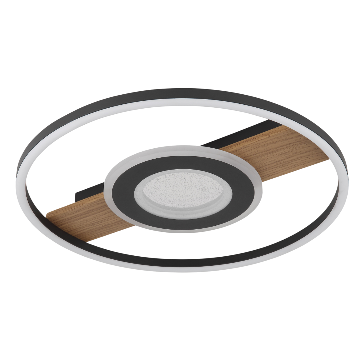 A GLOBO 67323-24 PIKARA mennyezeti lámpa modern, kétkörös kialakításával lenyűgöző, és eleganciát kölcsönöz bármely helyiségnek. A fa hatású, matt fekete színű fémtest korszerű, mégis természetes megjelenést kölcsönöz. A két matt fekete alumíniumból és fehér akrilból készült búra harmonikus fényeloszlást biztosít, míg a tiszta akrilkristályok csillogó fényjátékot teremtenek.