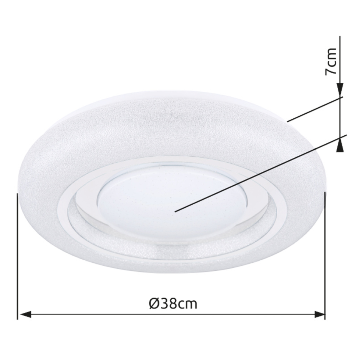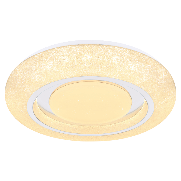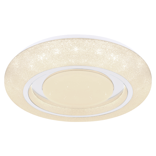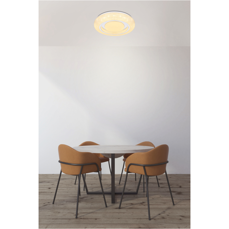A fehér színű alaplapon akril kristályokkal díszített bura található, mely króm gyűrűkkel van ellátva. Ez utóbbinak és az akril gyöngyöknek köszönhetően ragyogó hatást ad a Rada LED mennyezeti lámpa, mely otthonunk fénypontja lehet. Ezen felül a színhőmérséklet (3000-4000-6000K) beállítható a fali kapcsolón keresztül.