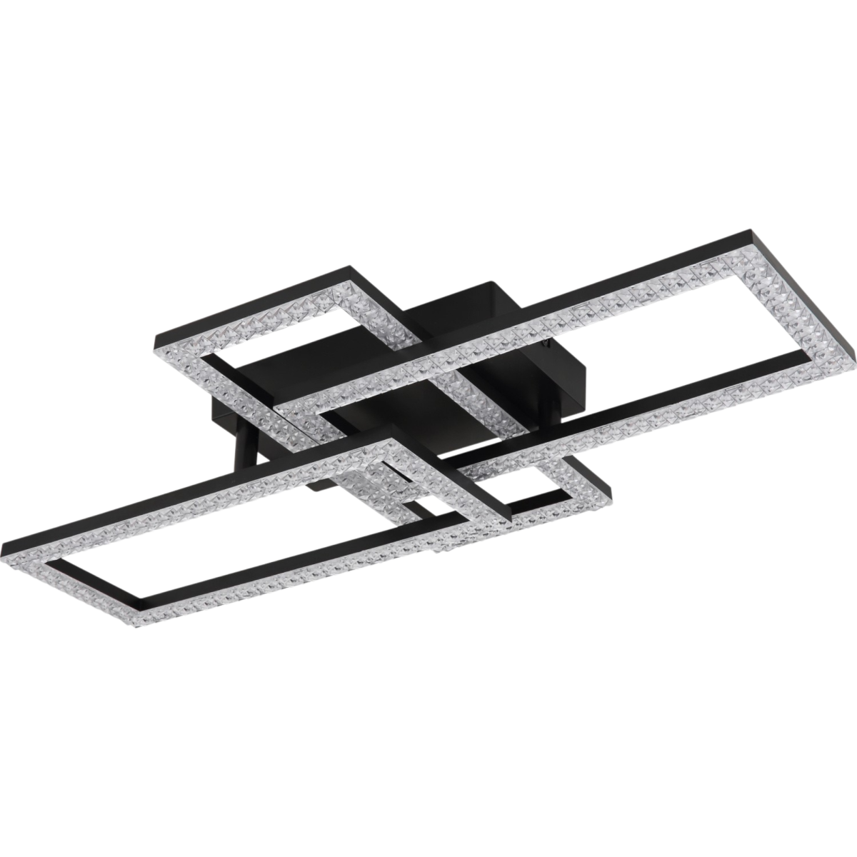 A SAPENA LED mennyezeti lámpa három egymáson elhelyezkedő téglalapból álló kialakításával lenyűgöző látványt nyújt. A lámpa teste fekete matt műanyagból készült, ami modern és egyszerű megjelenést kölcsönöz a terméknek. A búra átlátszó műanyag kristályokkal van kirakva, amelyek gyönyörű fénytörést és kellemes hangulatot hoznak létre. A beépített LED 24W teljesítményű és 1800 lumenes, ami világos és hatékony világítást biztosít a különböző méretű helyiségek számára. A fény színe 3000K, ami meleg és hangulatos légkört teremt. Stílusos és praktikus választás lakásban és munkahelyen, valamint folyosókhoz és bejárati területekhez egyaránt.