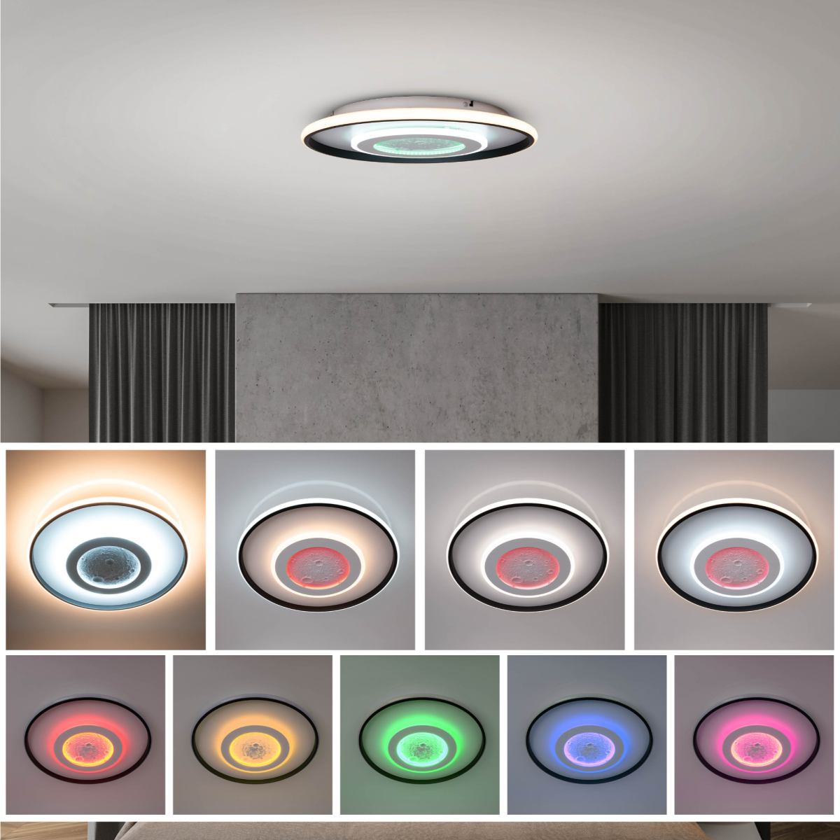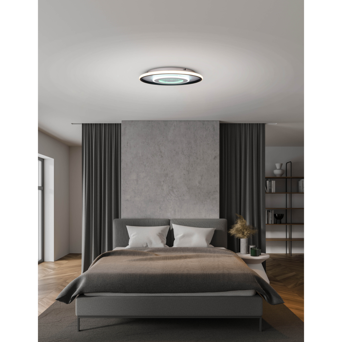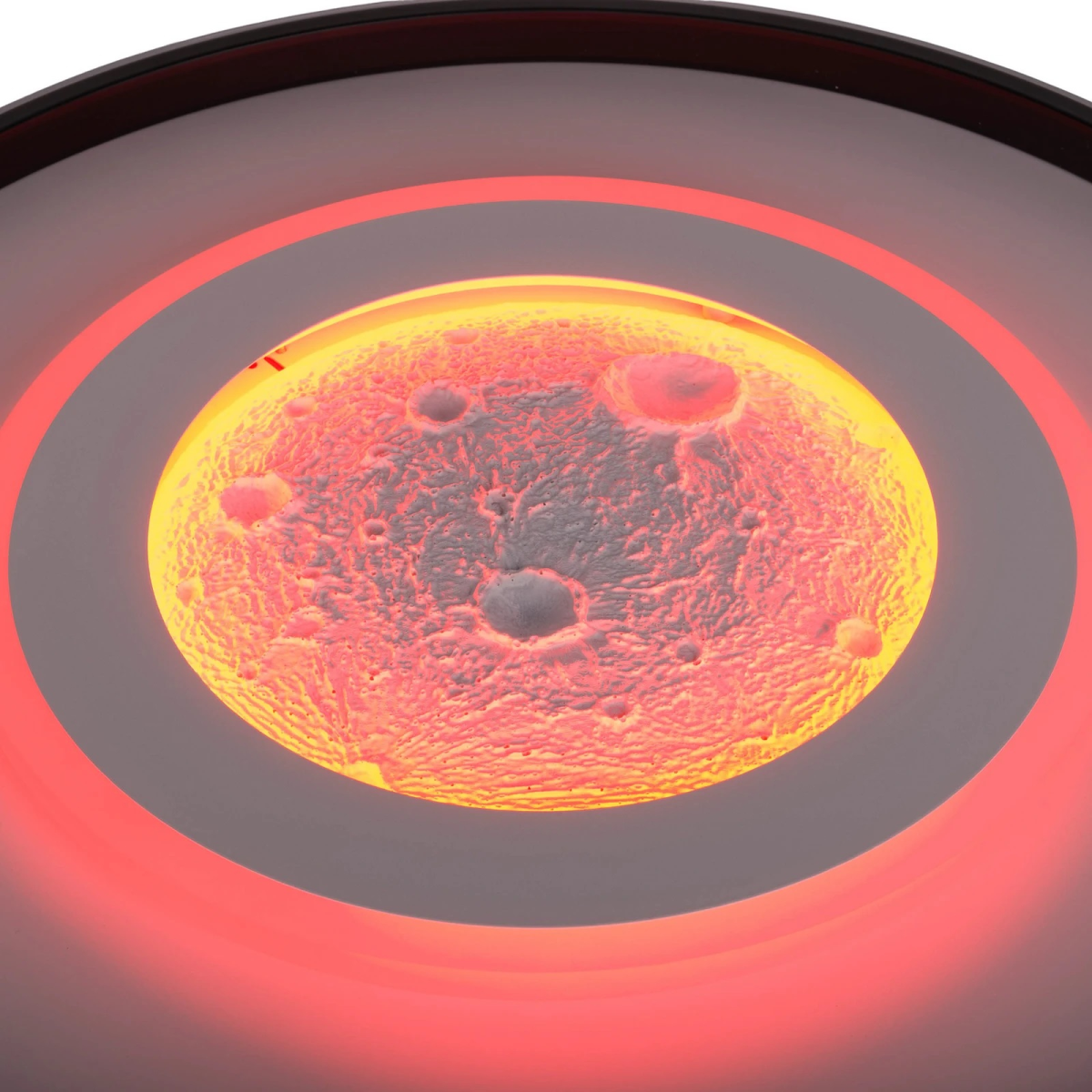 A Livana mennyezeti LED lámpa különleges, a hold felszínét idéző dekoratív kialakításával modern és egyedi hangulatot teremt. A LED technológia és a szabályozható funkciók révén a fényhatások térhatásúvá válnak, a távirányítóval állítható háttérszínek pedig lehetővé teszik, hogy a fényforrás közelebbinek vagy távolibbnak hasson.