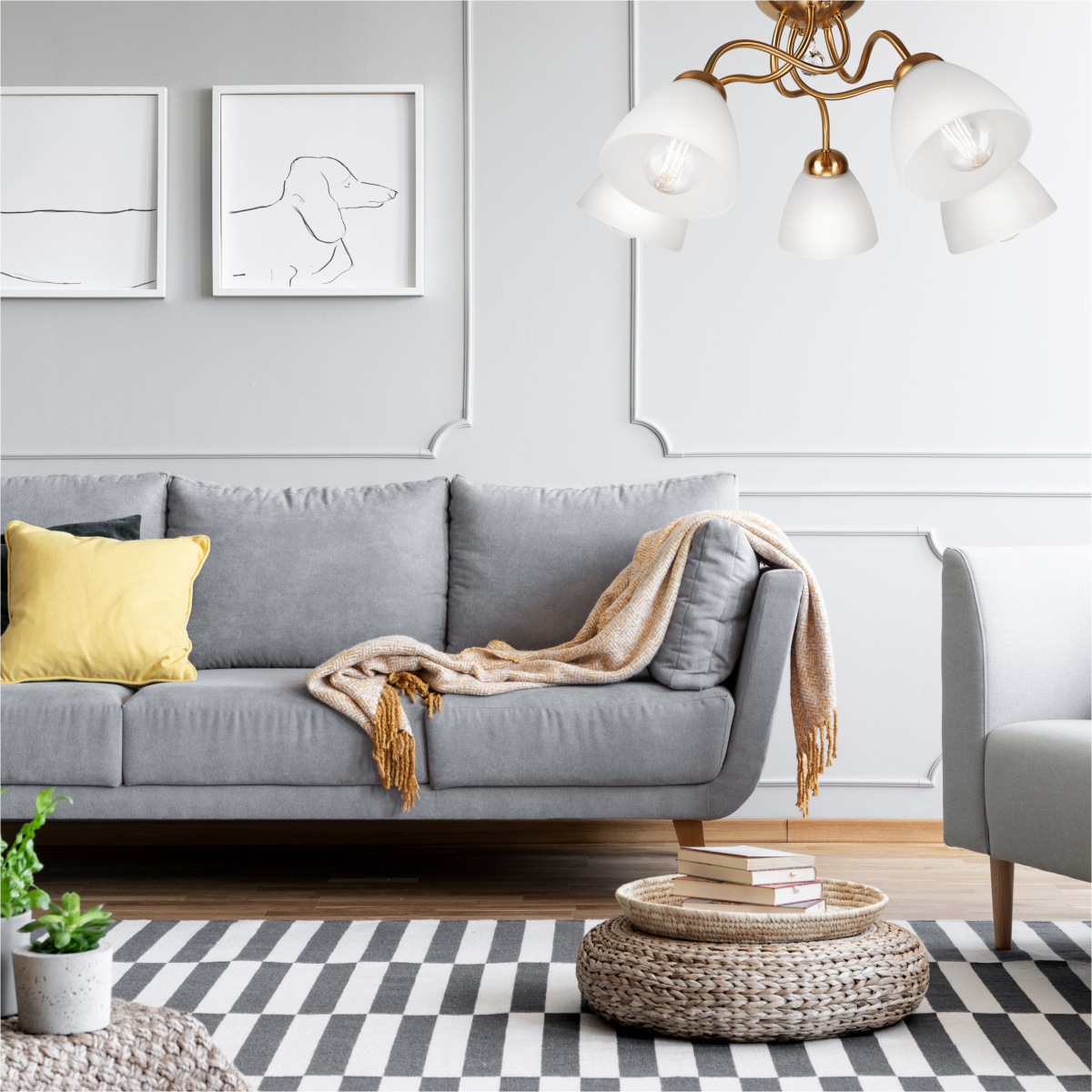 Ha világítástechnikai eszközökre gondolunk nem csak az egyszerű izzók és lámpatestek juthatnak eszünkbe. Életünk minden pontján körül vesznek minket ezek az igen hasznos eszközök, amelyek jelenléte olyan alapvetővé váltak manapság, hogy bele sem gondolunk abba, milyen is lenne nélkülük. Ezek mára már nem csak azzal az alapvető funkcióval rendelkeznek, hogy fényt hoznak az életünkbe, hanem fontos kiegészítőivé váltak otthonunknak, kertünknek is. Egy jól megválasztott mennyezeti lámpa segíti az otthoni munkavégzést, kényelmesebbé, biztonságosabbá teszi az életedet, olyan hangulatot teremt, amivel teljes mértékben élvezheted az otthonodban eltöltött időt. "LAMKUR MIRANDA" klasszikus stílusú mennyezeti lámpa, fehér-arany színben érhető el. Az ívelt keretű, ötlámpás Miranda mennyezeti lámpa a nappali bájos kiegészítője. A patinás fém csodálatosan illeszkedik az opálüveg árnyalatokhoz. Egy diszkrét kristály, amely középen lóg a baldachinról, harmonikusan egészíti ki a megjelenést. A lámpa 5db E27-es foglalattal rendelkezik, mely 5 db maximum 60W teljesítményű fényforrással üzemeltethető.
