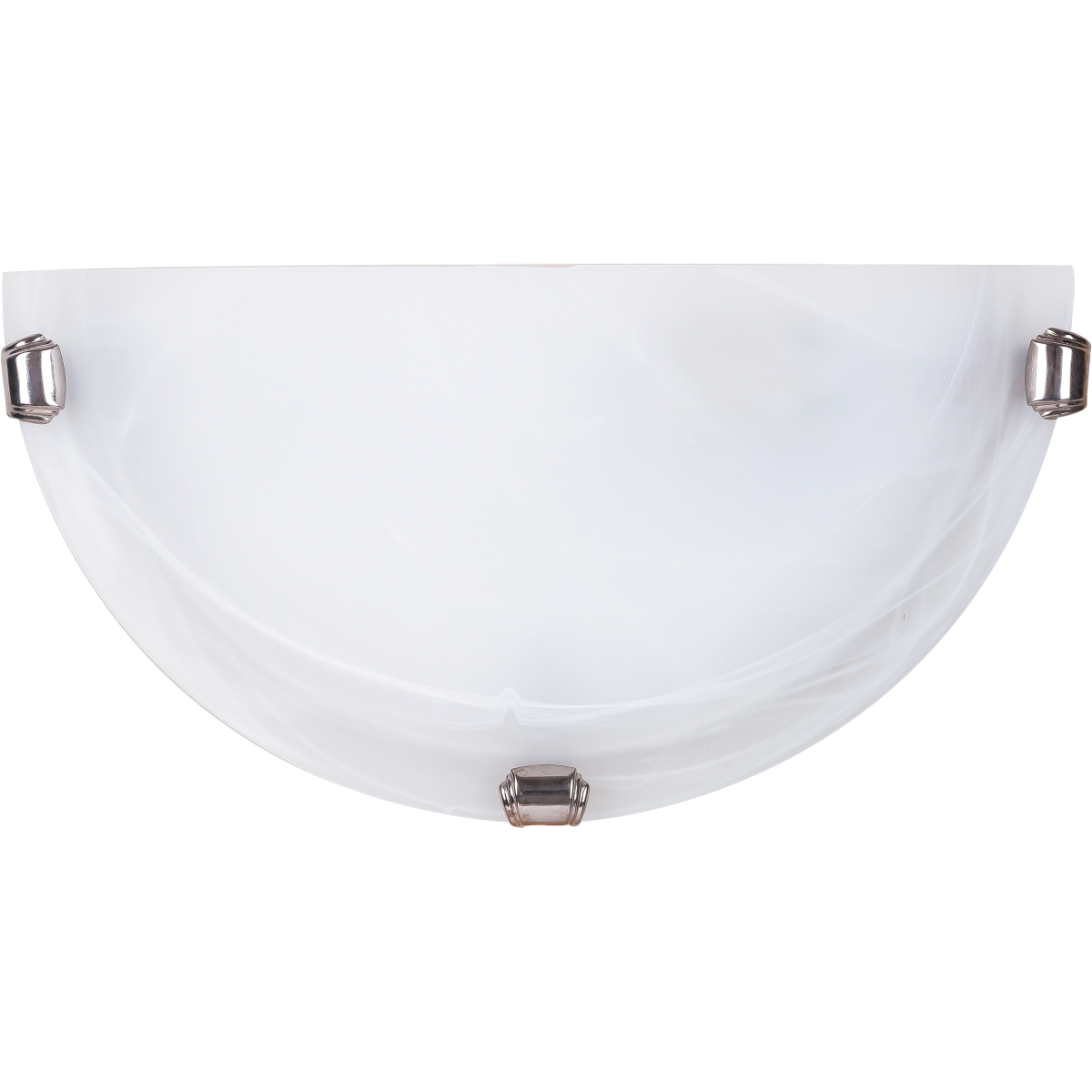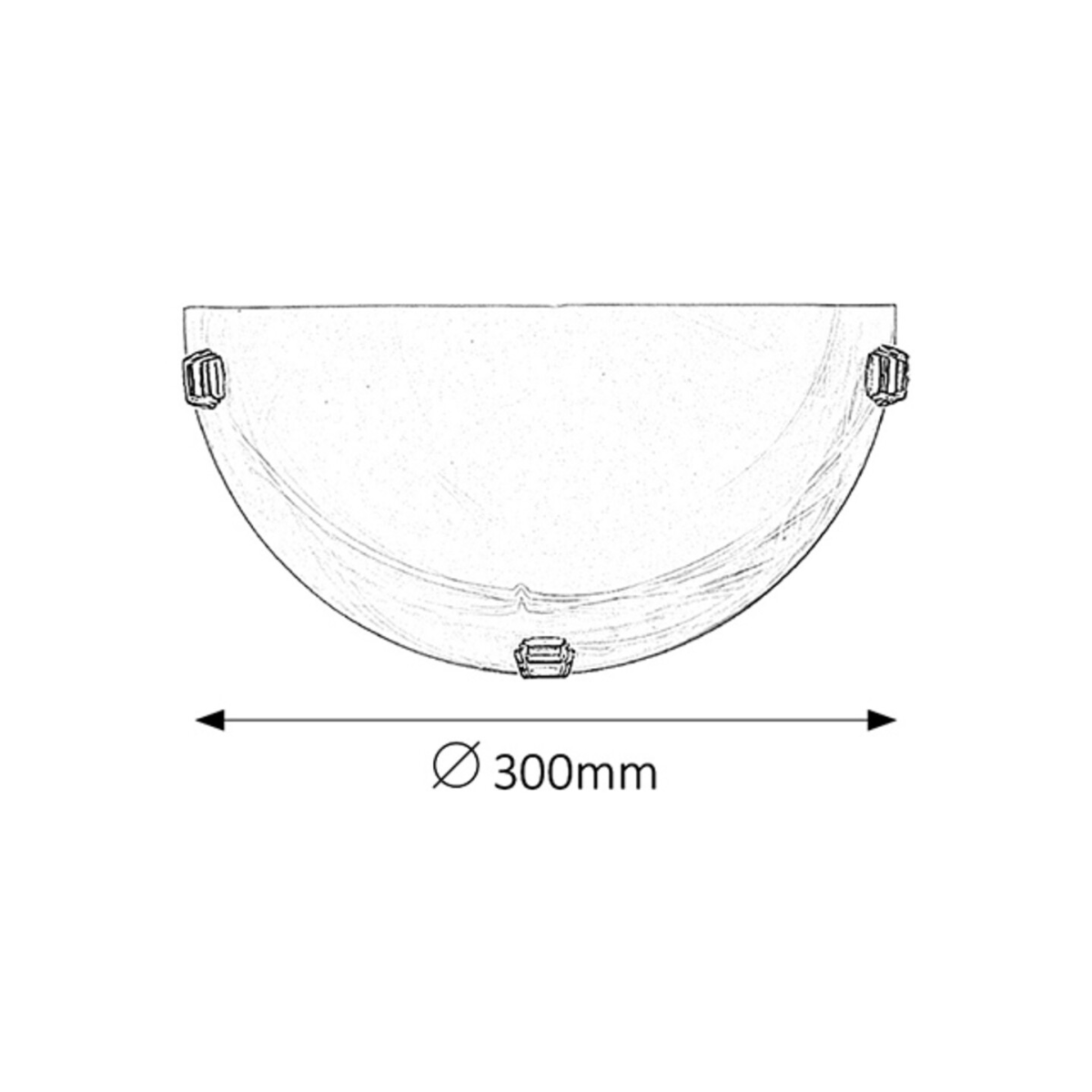 30 cm átmérőjű, klasszikus stílusú fali lámpa. Fém és műanyag szerkezet, kiváló minőségű, vastag, fehér alabástromüveg lámpaburával, króm színű rögzítő körmökkel. E27-es foglalatú, maximum 60W teljesítményű fényforrással használható.