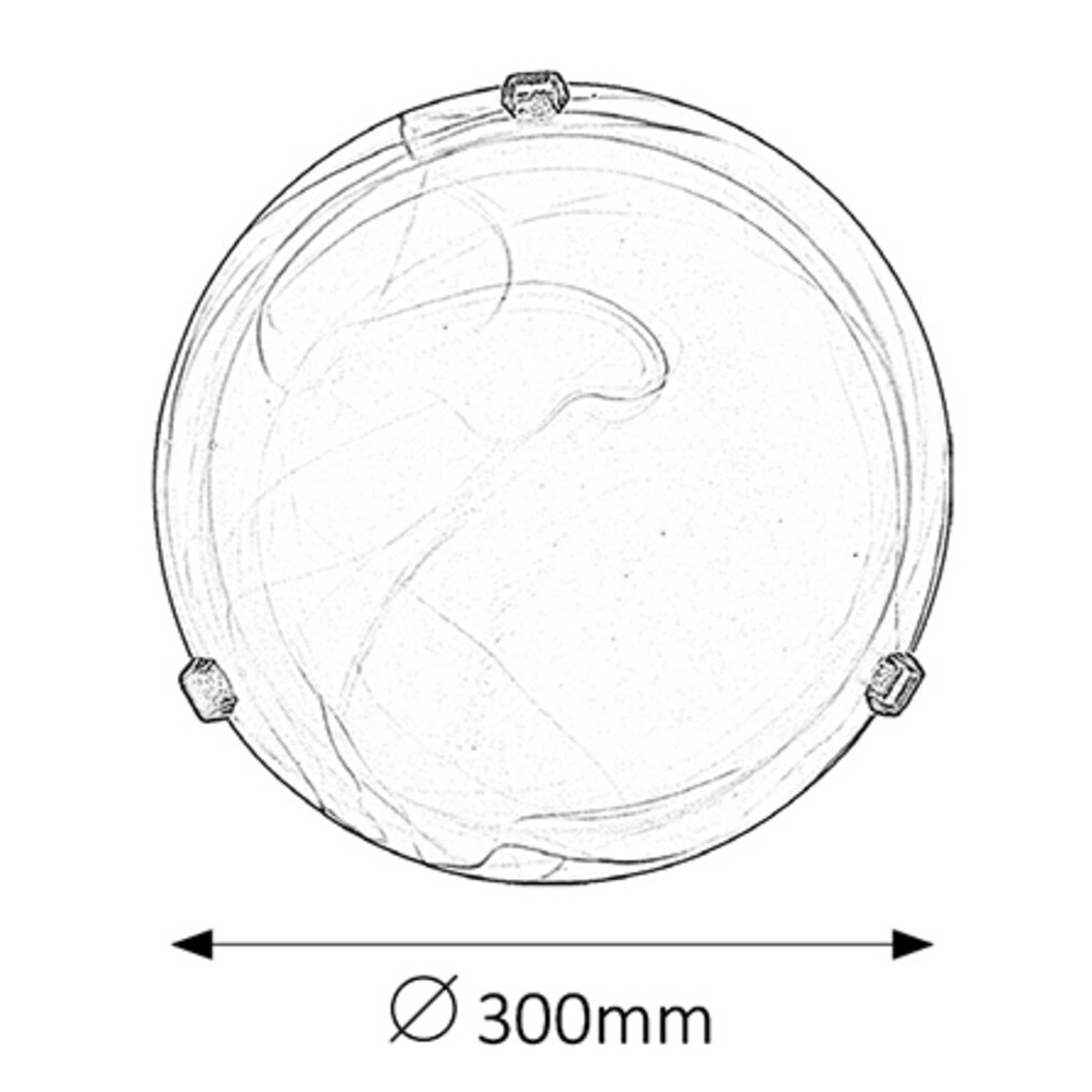 30 cm átmérőjű, klasszikus stílusú mennyezeti lámpa. Fém és műanyag szerkezet, kiváló minőségű, vastag, tobacco mintás alabástrom üveg lámpaburával, bronz színű rögzítő körmökkel. E27-es foglalatú, maximum 60W teljesítményű fényforrással használható.