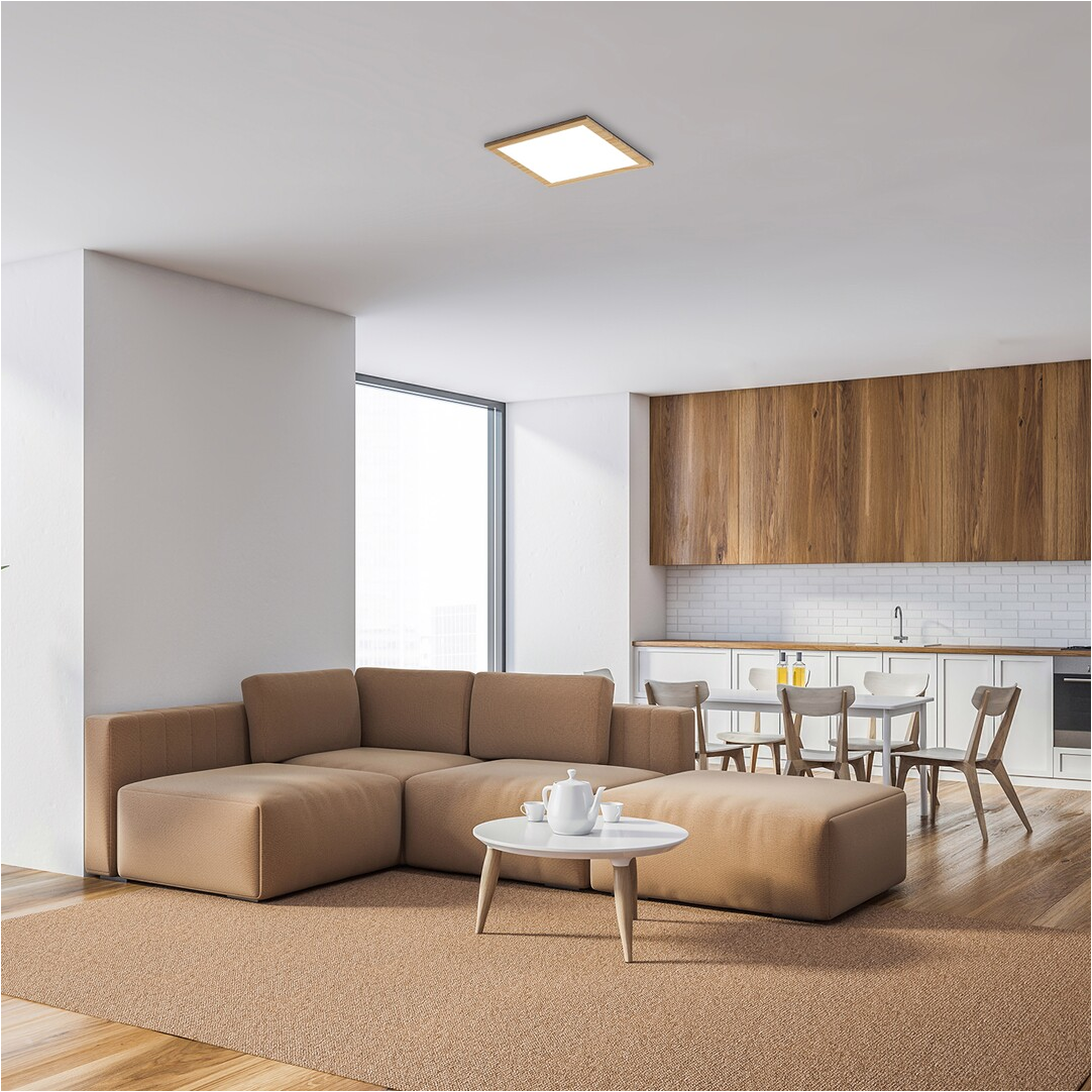A modern stílusú, négyszögletes Almond mennyezeti lámpa remek választás lehet a nappaliba, hálószobába vagy a dolgozószobába. A bükkszínűre festett, fa hatású, alumínium lámpatestet fehér műanyag búra egészíti ki. Ez a modell felszerelve olyan hatást kelt, mint egy ablak, amelyen keresztül kintről szűrődik be a természetes fény. Az Almond LED-panel lámpa beépített fényforrással rendelkezik, amelynek teljesítménye 12 W, fényereje 1260 lumen, élettartama pedig kiemelkedően magas:30000 óra! A beépített fényforrás színhőmérséklete 4000 K, vagyis természetes fehér fénnyel világít. Az Almond mennyezeti lámpa mérete 295x295 mm, mennyezettől mért távolsága pedig mindössze 50 mm.