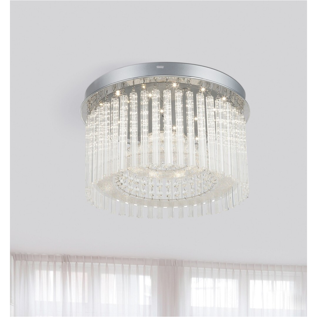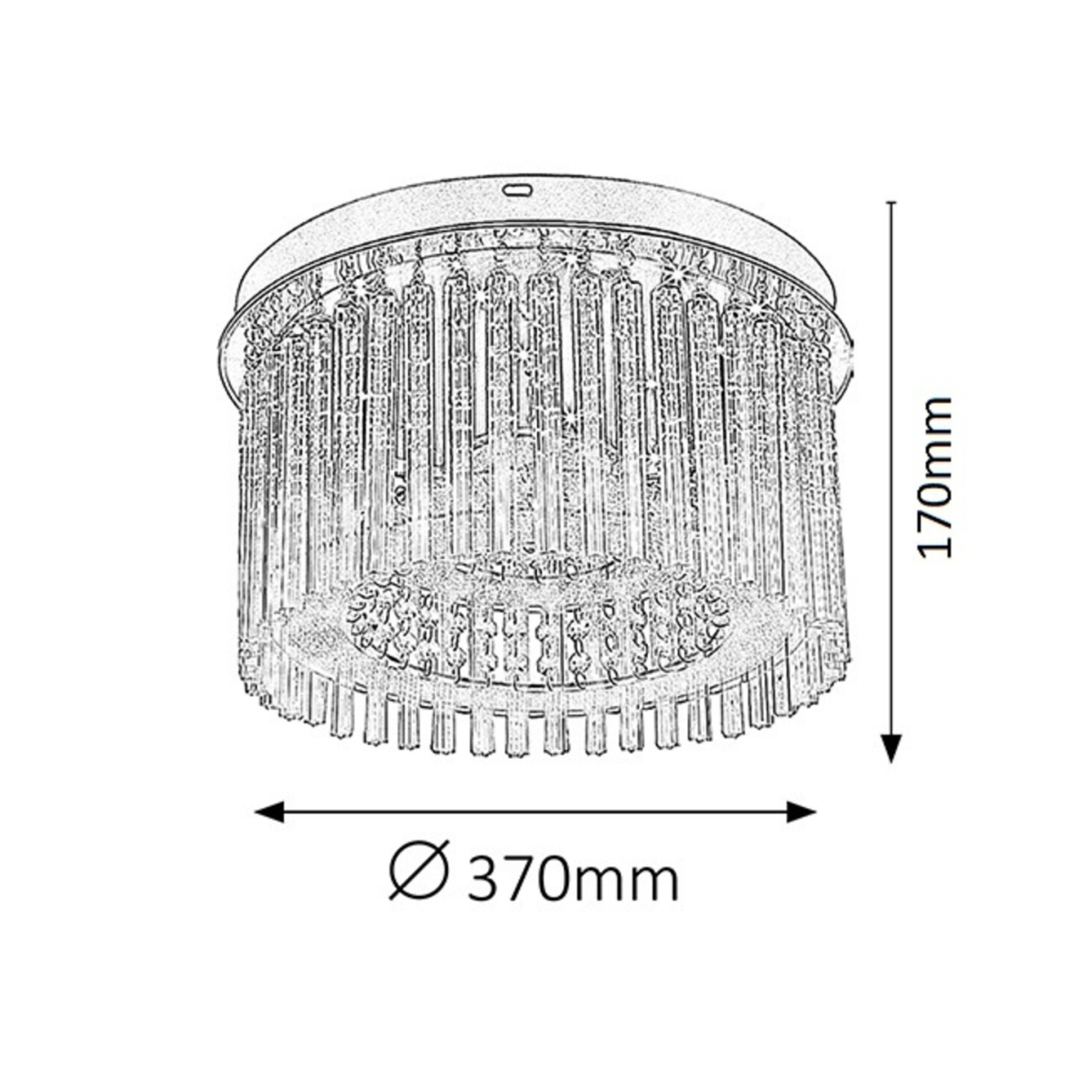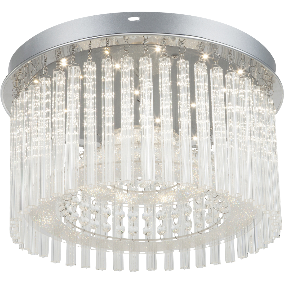 Exkluzív megjelenésű, modern stílusú mennyezeti lámpa beépített energiatakarékos LED fényforrással. 37 cm átmérőjű, króm színű, fémből készített test, üveg és akril lámpabúra. A beépített LED fényforrás 18W teljesítmény mellett 1500 lumenes fényerőt és 4000 Kelvines, természetes fehér színű fényt biztosít.