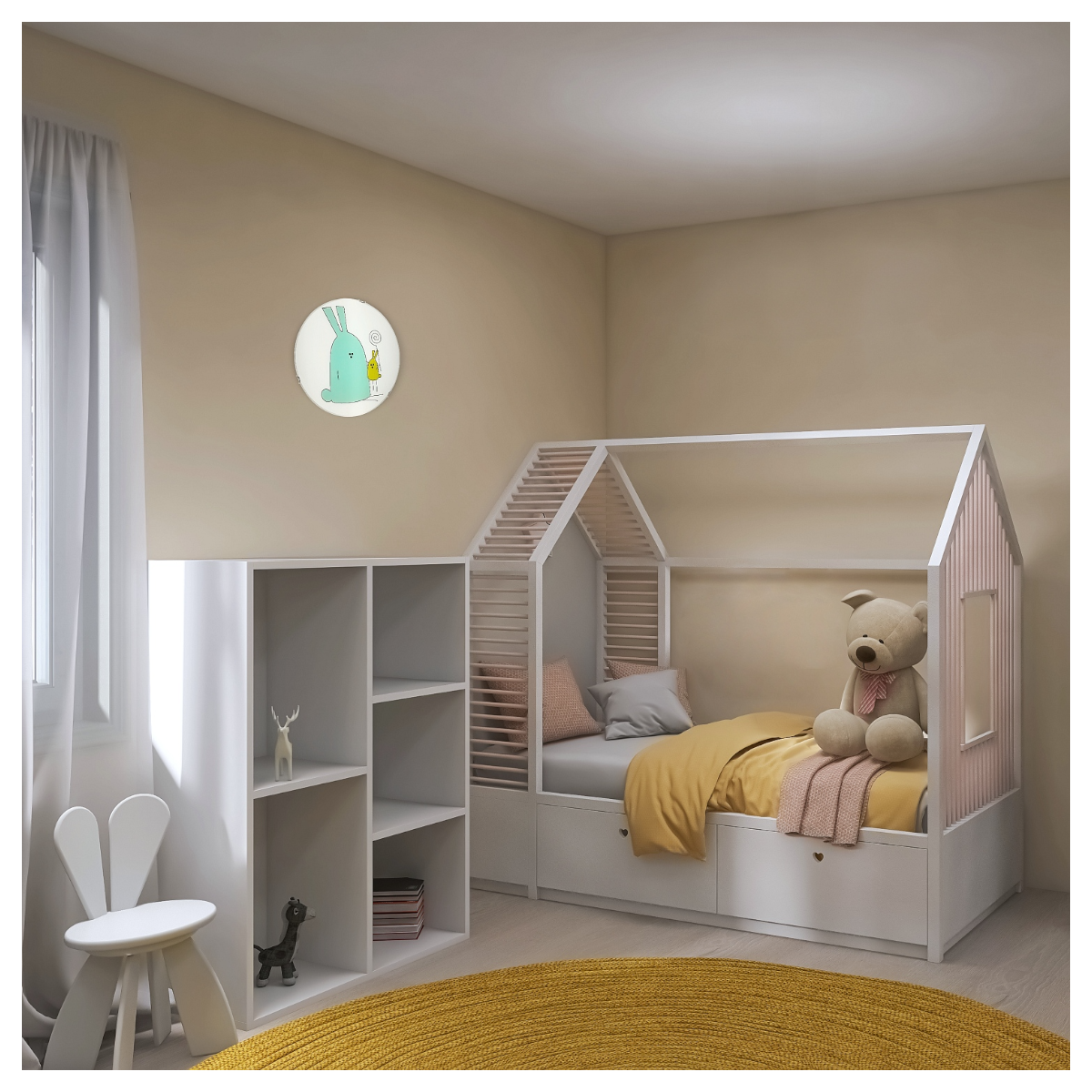A Rábalux Flappy mennyezeti lámpa játékos nyuszis motívumával barátságos és vidám hangulatot teremt a gyerekszobában.