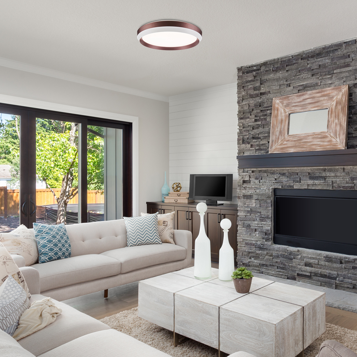 A kerek Fontana mennyezeti lámpát azoknak ajánljuk, akik nappalijukba letisztult dizájnnal készült modern központi fényforrást keresnek, és szobájuk berendezésébe jól illeszkednek a meleg tónusú kiegészítők. A barna színben, fémből készült lámpát matt fehér műanyagbúra egészíti ki. A Fontana a G energiaosztályba tartozó beépített LED fényforrással rendelkezik, amelynek a teljesítménye 24 W, fényereje búrával 1100 lumen, búra nélkül 2600 lumen, élettartama pedig 25 000 óra. A mennyezeti lámpa színhőmérséklete 3000 K, azaz meleg fehér fénnyel világít, ami elősegíti az otthonos, meghitt hangulat megteremtését. A Fontana átmérője 390 mm, mennyezettől mért távolsága 70 mm.