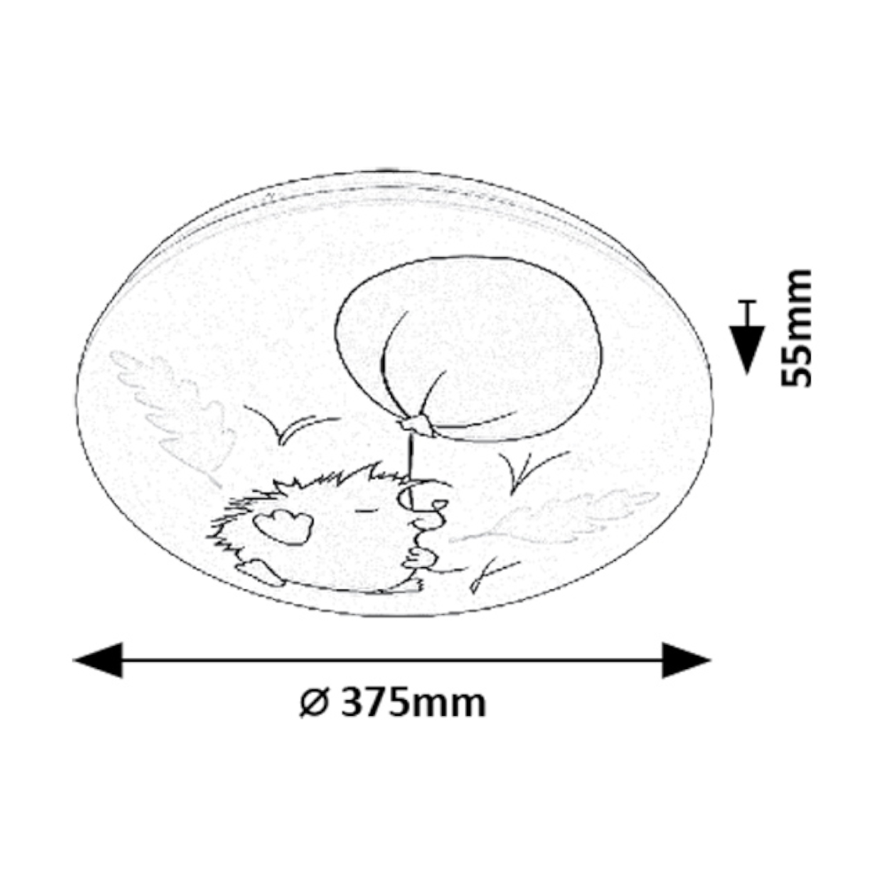 A Rábalux Hedgy gyerek mennyezeti lámpa játékos motívumával és LED világításával otthonosabbá teszi a gyerekszobát. A kerek, 37,5 cm átmérőjű lámpatest fém szerkezetből készült, fehér műanyag búráját sünis-lufis minta díszíti. A mintázat barnás és narancsos árnyalatokkal gazdagítja a helyiség hangulatát, így fiús és lányos szobában egyaránt jól mutat.