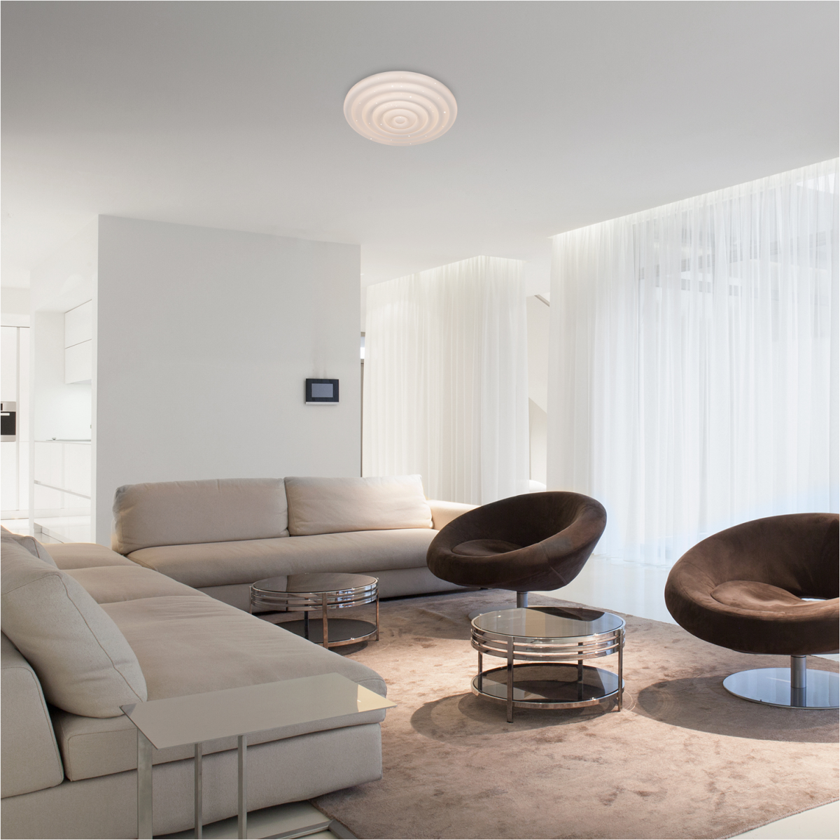 A csillogó effekttel ellátott kerek Katina mennyezeti lámpa szinte bármely modern nappaliba vagy hálószobába ízléses és praktikus választás lehet. A lámpa fehér színének köszönhetően szinte beleolvad a mennyezet jellemzően világos árnyalatába, ugyanakkor csillogó felülete finom és elegáns megjelenést kölcsönöz ennek a modellnek. A fémből készült Katina műanyagbúrával egészül ki, és az F energiaosztályba tartozó beépített LED fényforrással rendelkezik, amelynek a teljesítménye 24 W, fényereje búrával 2050 lumen, búra nélkül 2400 lumen, élettartama pedig igazán fantasztikus: 50 000 óra! A 4000 K színhőmérsékletű fényforrás természetes fehér fénnyel világít, amely modern, tiszta hatást kelt, így ideális otthonunk nagy forgalmú helyiségeibe. A mennyezeti lámpa átmérője 380 mm, mennyezettől mért távolsága 70 mm.