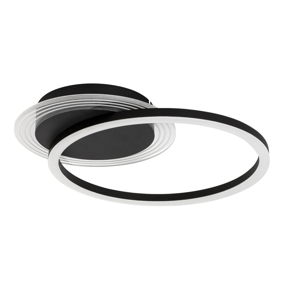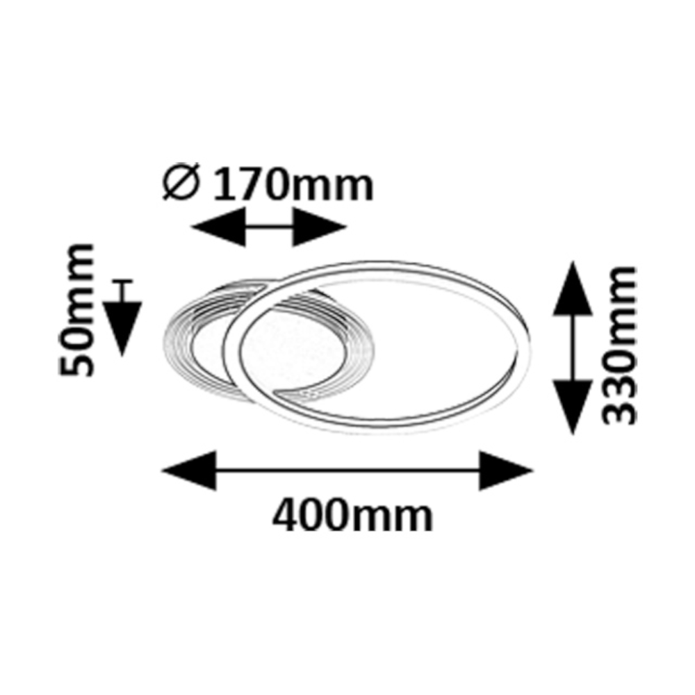 A nagyobbik lámpaelem gyűrűt formáz. Harmonikus megjelenésével és letisztult designjával a lámpa szinte bármely modern otthon berendezésébe beilleszthető. A mennyezeti lámpa beépített LED fényforrást tartalmaz, amely meleg fehér fényt sugároz, elősegítve a meghitt, otthonos hangulat megteremtését. Elsősorban a nappaliba, étkezőbe vagy hálószobába ajánljuk.