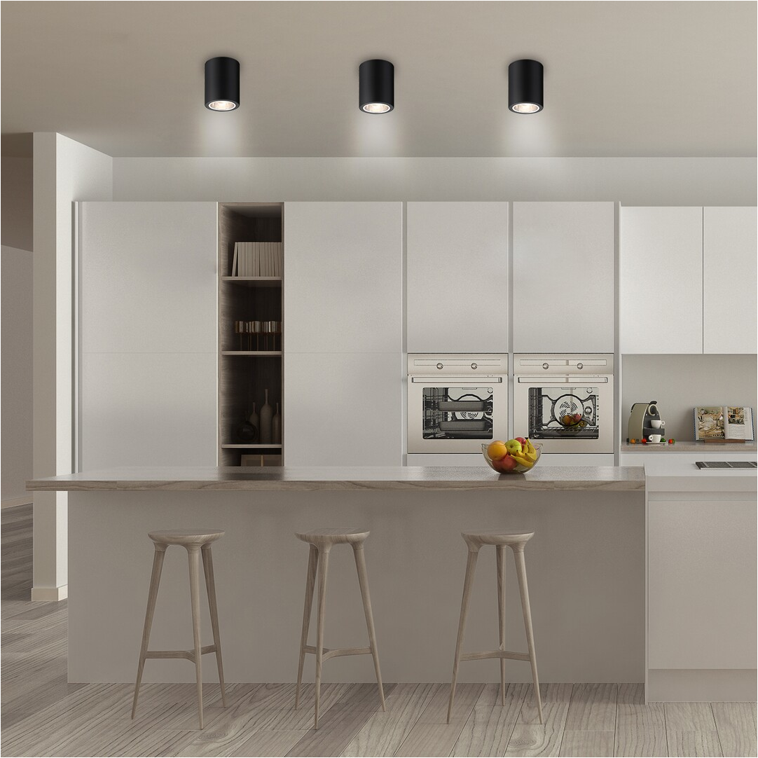 A minimál stílus képviselői közé tartozó Kobald mennyezeti lámpa remek választás lehet modern nappalinkba, hálószobánkba vagy a dolgozószobába. A matt fekete színű, henger alakú modell teljes egészében fémből készül. A lefelé világító lámpa egy darab, legfeljebb 25 W teljesítményű, G45-ös fényforrással használható, a foglalat típusa E27. Attól függően, hogy a lakás melyik helyiségében fogjuk felszerelni, választhatunk hozzá meleg vagy természetes fehér fényű fényforrást. A kisméretű lámpából tetszés szerint többet is elhelyezhetünk a szobában. A Kobald ráépíthető és beépíthető mennyezeti lámpa átmérője 90 mm, mennyezettől mért távolsága 110 mm.