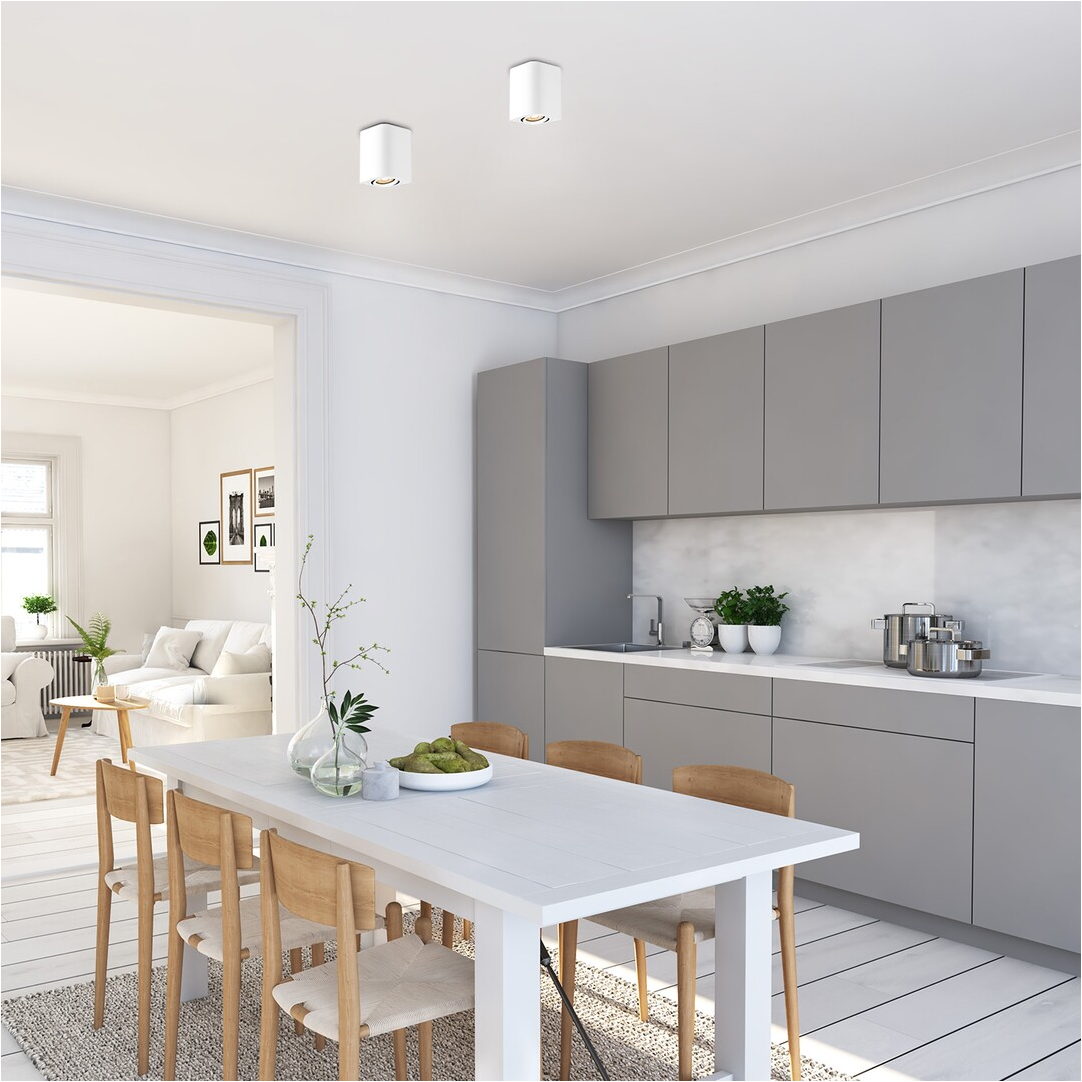 A minimál stílus jegyében készült Kobald mennyezeti lámpa remek választás lehet modern nappalinkba, hálószobánkba vagy a dolgozószobába. A matt fehér színű, hasáb alakú modell anyaga teljes egészében alumínium. A lefelé világító lámpa egy darab, legfeljebb 42 W teljesítményű fényforrással használható, a foglalat típusa GU10. A világítás szöge igény esetén 15 fokkal módosítható. Attól függően, hogy a lakás melyik helyiségében fogjuk felszerelni, választhatunk hozzá meleg vagy természetes fehér fényű fényforrást. A kisméretű lámpából tetszés szerint többet is elhelyezhetünk a szobában.