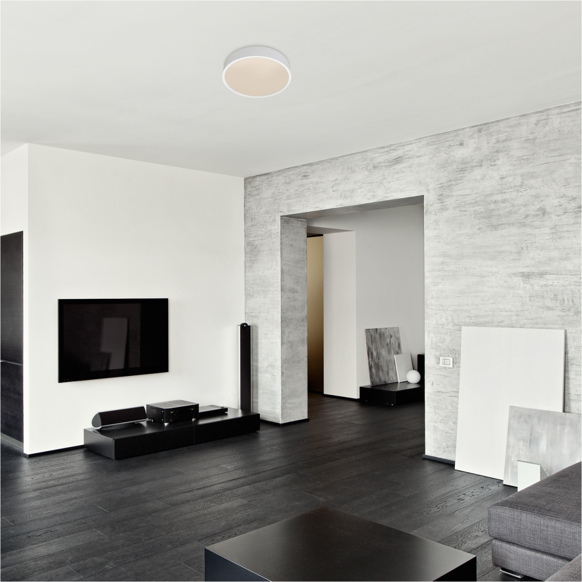 A kerek Larcia mozgásérzékelős mennyezeti lámpa univerzális darab: diszkrét megjelenésével bármely modern otthon nappalijába, hálószobájába, konyhájába vagy fürdőszobájába megfelelő választás lehet. A fehér színű, korong formájú modell fehér búrával, teljes egészében műanyagból készül. A Larcia a G energiaosztályba tartozó beépített LED fényforrással rendelkezik, amelynek a teljesítménye 19 W, fényereje búrával 1070 lumen, búra nélkül 1900 lumen.