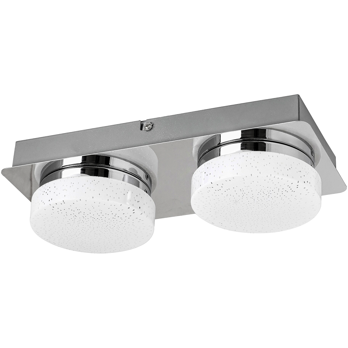 A csillogó effekttel készült Hilary kettes mennyezeti lámpa igazán hangulatos kiegészítője lehet modern nappalink vagy hálószobánk berendezésének. A fémből és műanyagból készült spotlámpa testét opál színű búrák egészítik ki, melyek alatt két darab beépített, energiatakarékos LED fényforrás rejtőzik. A fényforrások teljesítménye összesen 10 W, fényerejük 800 lumen, élettartamuk mintegy 20 000 óra. Színhőmérsékletük 4000 K, ennek megfelelően természetes fehér fénnyel világítják meg környezetüket. A lámpa szögletes dísztalpának hossza 280 mm.
