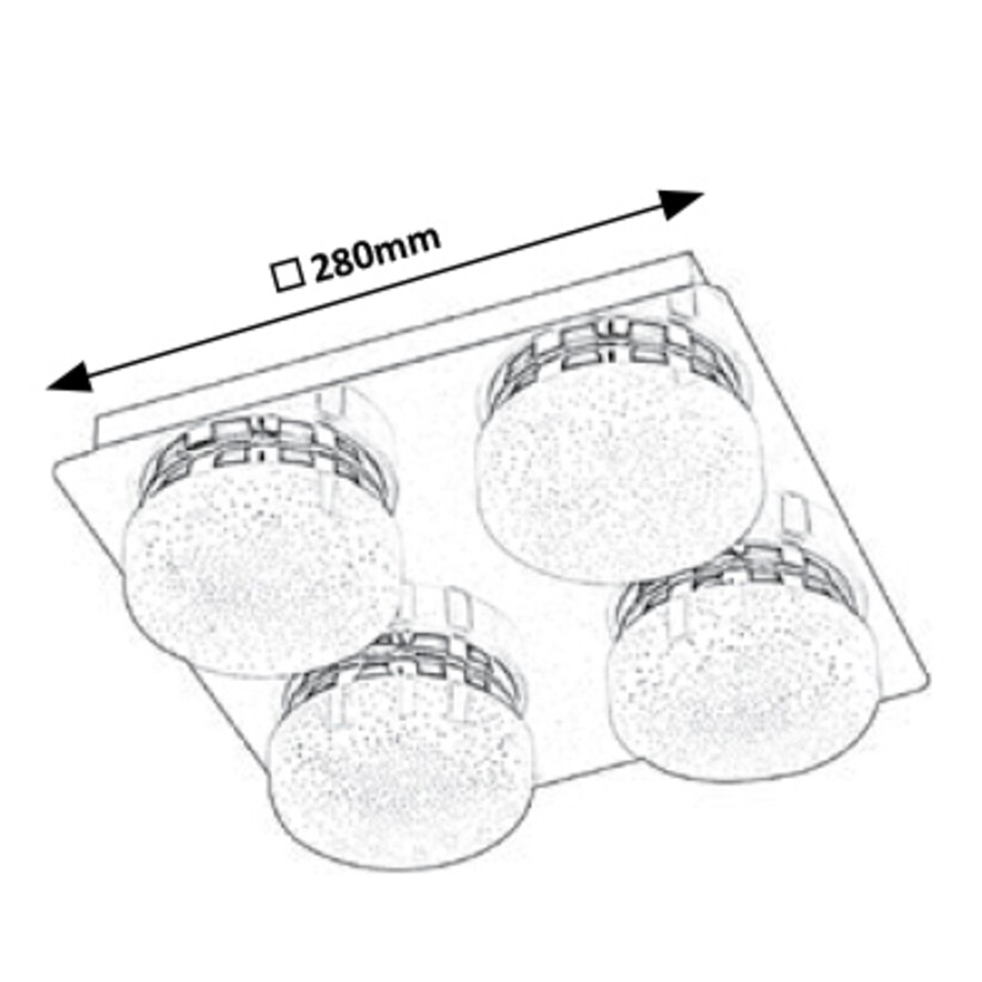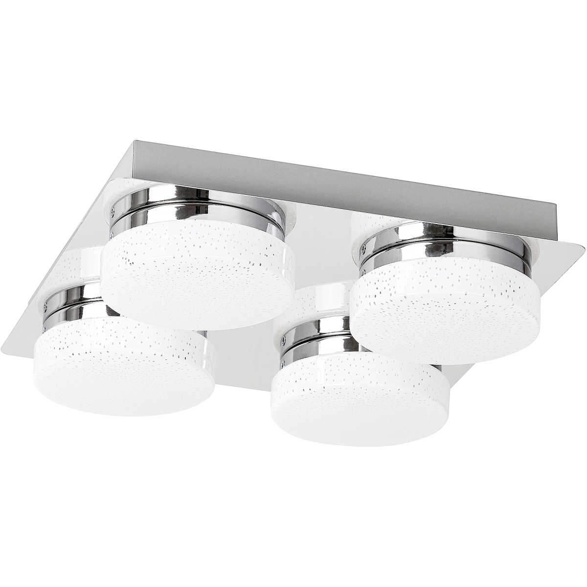 A csillogó effekttel készült Hilary négyes mennyezeti lámpa elegáns és hangulatos kiegészítője lehet modern nappalink vagy hálószobánk berendezésének. A fémből és műanyagból készült spotlámpa króm színű testét opál burák egészítik ki, melyek alatt négy darab beépített, energiatakarékos LED fényforrás rejtőzik. A fényforrások teljesítménye összesen 20 W, fényerejük 1600 lumen, élettartamuk mintegy 20 000 óra. Színhőmérsékletük 4000 K, ennek megfelelően természetes fehér fénnyel világítják meg környezetüket. A lámpa négyzet alakú dísztalpának mérete 280x280 mm.