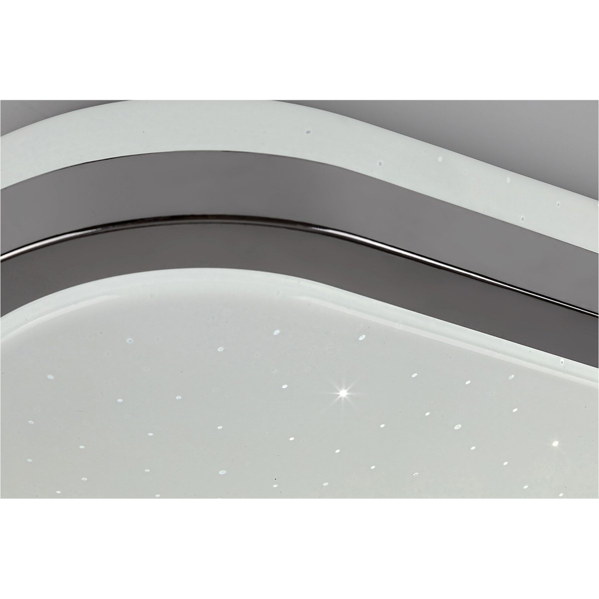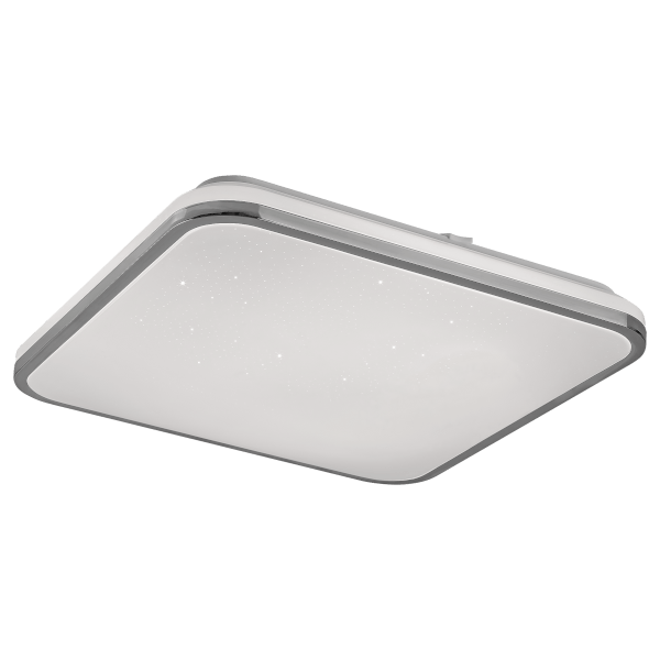 A csillogó effekttel ellátott, szögletes Linden mennyezeti lámpa letisztult dizájnjának és sokoldalúságának köszönhetően remek választás lehet modern nappalinkba vagy hálószobánkba. A lekerekített sarkokkal rendelkező, fémből készült, krómszínű lámpatestet fehér műanyag búra egészíti ki. A mennyezeti lámpa beépített LED fényforrással rendelkezik, amelynek élettartama 25000 óra, teljesítménye 72 W, fényereje 5800 lumen, színhőmérséklete pedig fali kapcsoló, illetve távirányító segítségével 3000–6500 K között változtatható. A Linden dimmelhető is, azaz fényerejét tetszés szerint szabályozhatjuk, távirányító segítségével. További extrák a memória, az időzítő és az éjszakai funkció. A Linden okos lámpa mérete 455x455 mm, mennyezettől mért távolsága 75 mm.