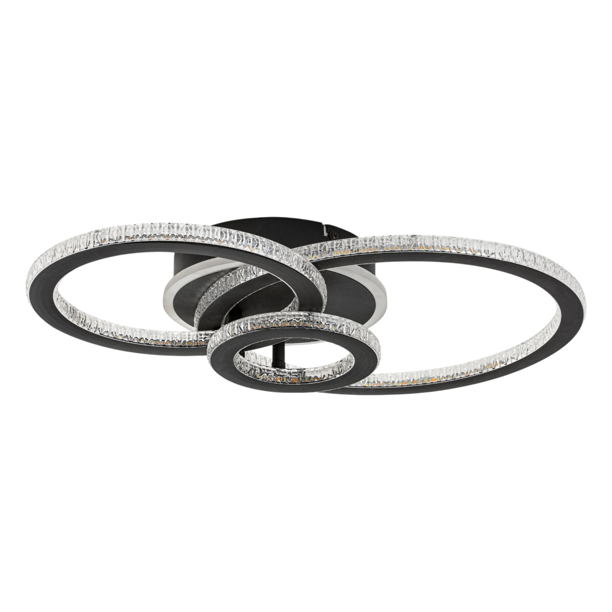 A Rábalux Maziar mennyezeti lámpa modern, gyűrű formájú kialakításával és kristályhatású búrájával különleges látványt nyújt. A fekete fémből készült test és a fehér műanyag burkolat elegáns megjelenést biztosít, amely tökéletesen illik modern enteriőrökbe.