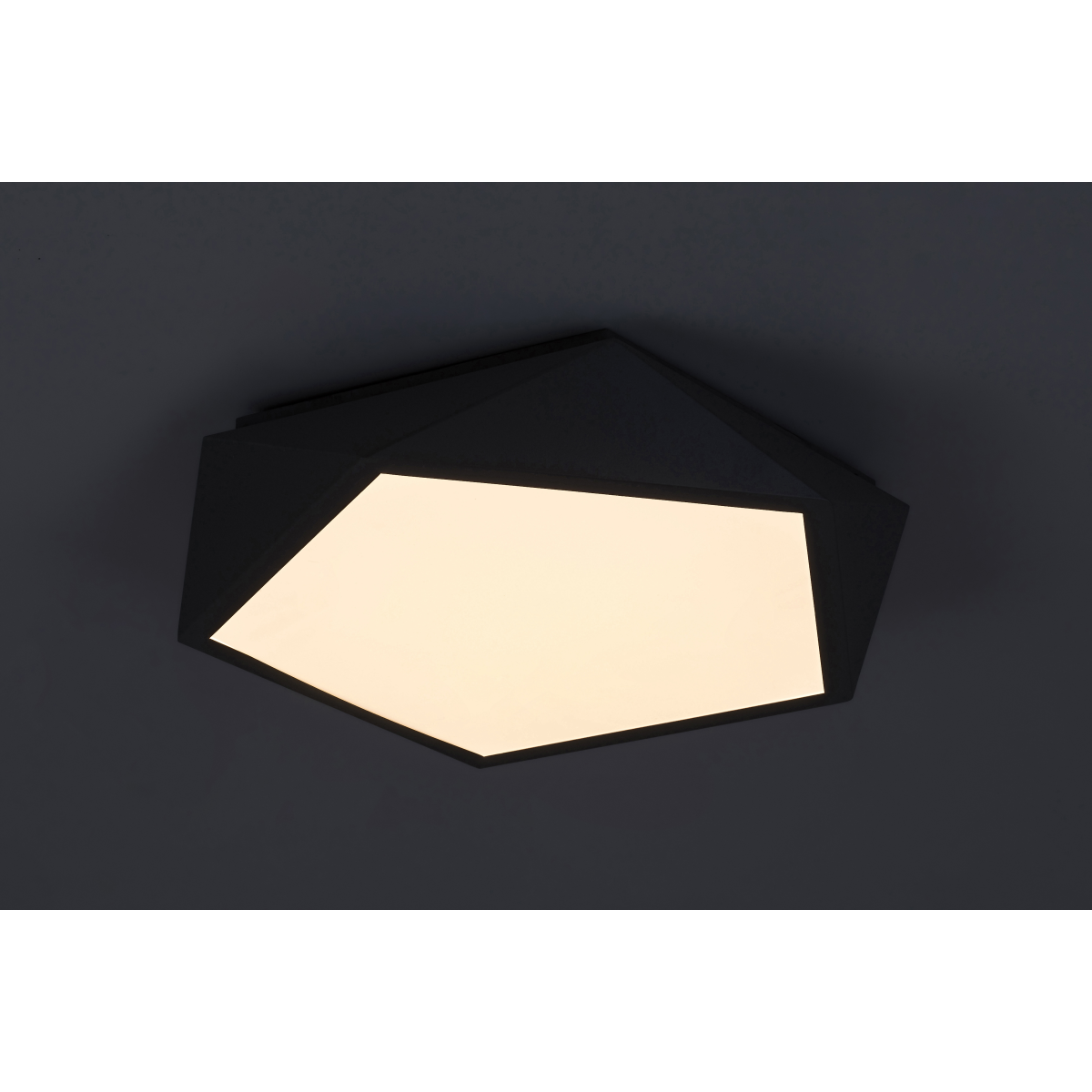 A modern stílusú, nagyméretű Raffa mennyezeti lámpát elsősorban a nappaliba vagy a hálószobába ajánljuk. Ez az ötszög alapformájú modell semleges színeivel számos modern otthon berendezésébe jól beilleszthető. A fémből készült, szürke színű lámpát fehér műanyagbúra egészíti ki, miközben a Raffa dizájnját a lámpatest többszörösen megtört, szögletes formája teszi izgalmasabbá. A lámpa a G energiaosztályba tartozó, beépített LED fényforrással rendelkezik, amelynek teljesítménye 30 W, fényereje búrával 1000 lumen, búra nélkül 1800 lumen. A 3000 K színhőmérsékletű fényforrás élettartama egészen rendkívüli: 50 000 órán keresztül szolgál ki bennünket meleg fehér fényével. Az ilyen típusú fény segít meghitt, otthonos hangulatot teremteni a szobában, ugyanakkor pihenteti a szemet, és ideális a lazításhoz, kikapcsolódáshoz. A Raffa mennyezeti lámpa átmérője 400 mm, mennyezettől mért távolsága 80 mm.